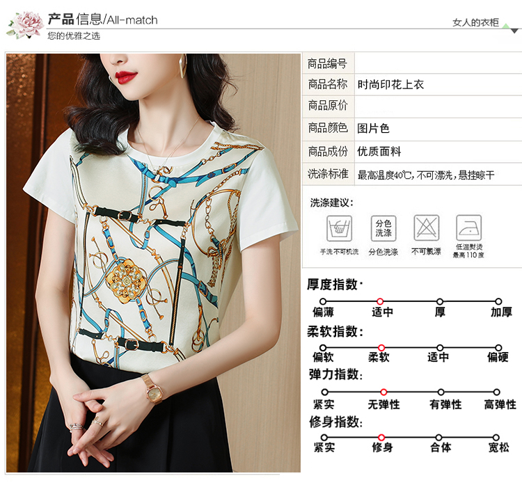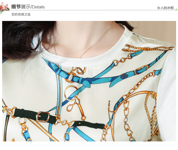 RM8969#时尚印花真丝上衣女短袖2023夏装新款高端大牌气质桑蚕丝白色T恤