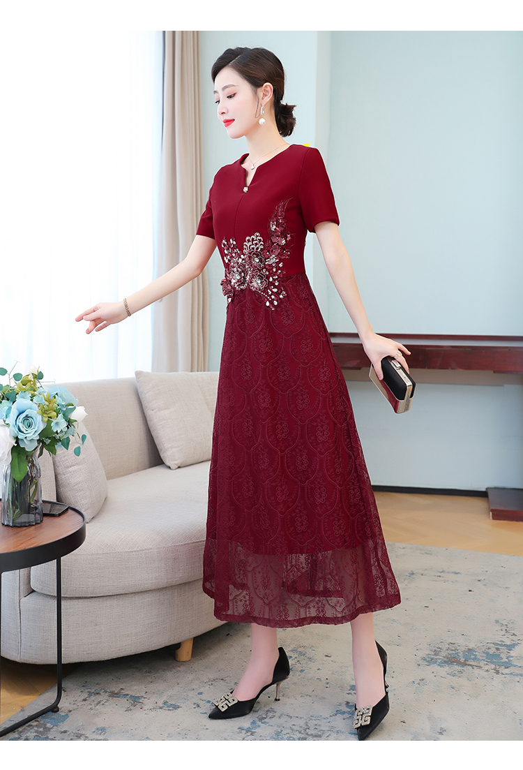 RM9145#新款婚宴妈妈礼服蕾丝连衣裙喜婆婆婚宴装高贵丈母娘中长款