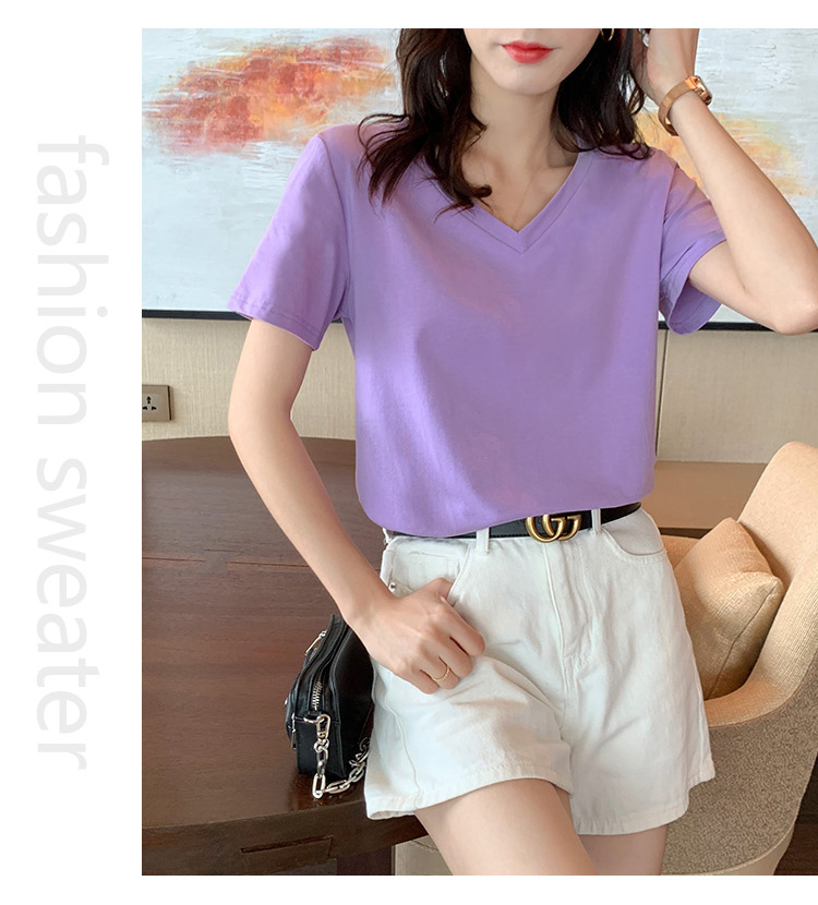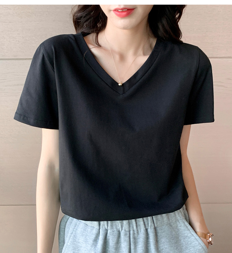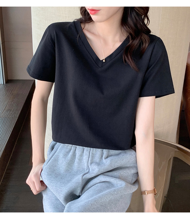 RM9237#V领短袖T恤女韩版简约百搭夏季新款半袖上衣宽松白色打底衫潮