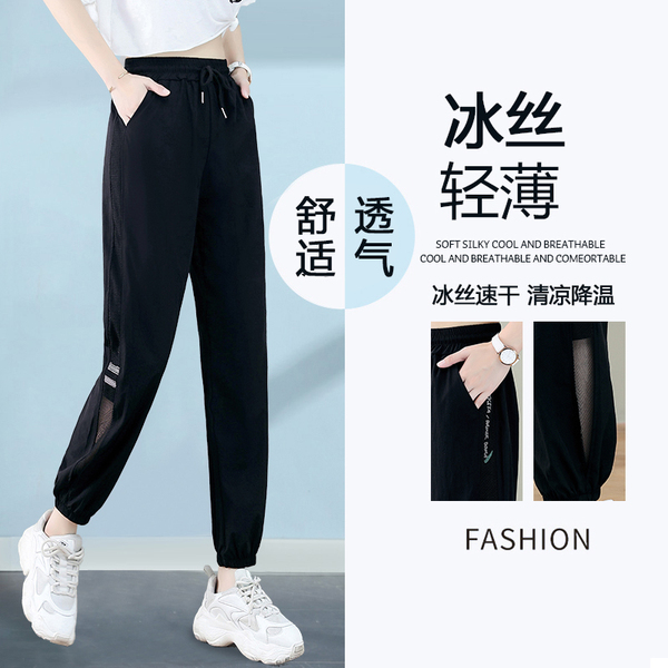 RM9284#透气速干裤女夏季薄款透气宽松束脚运动裤九分休闲裤哈伦裤薄款