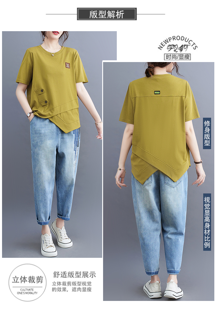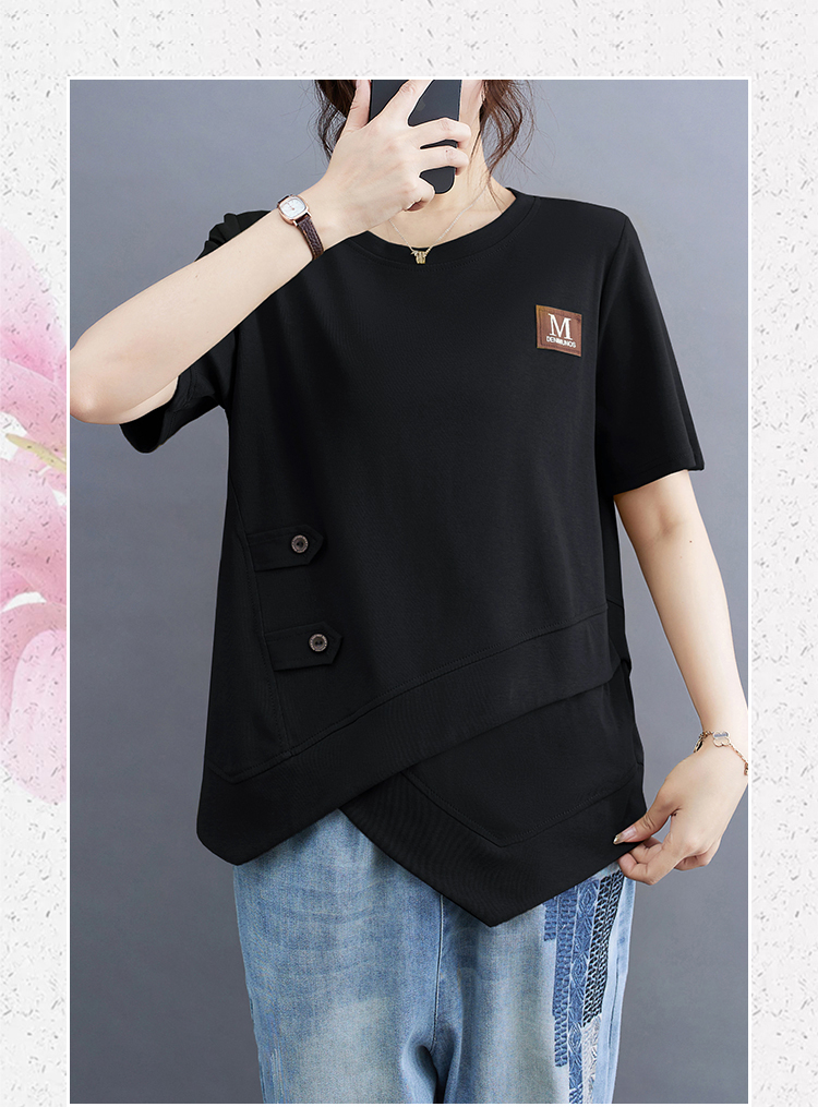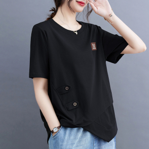 RM9290#新款百搭不规则上衣女显瘦遮肉字母订标纯色休闲减龄圆领卫衣