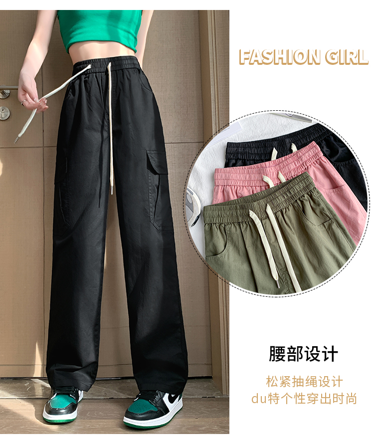 RM9320#工装裤女2023夏季薄款美式口袋高腰百搭宽松阔腿休闲运动裤子