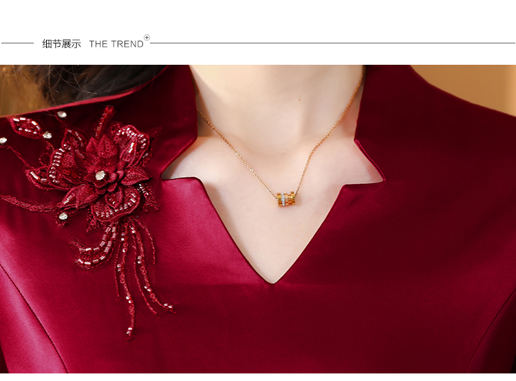 RM9341#新款婚礼妈妈礼服旗袍醋酸缎高档喜婆婆新式旗袍礼服中长款