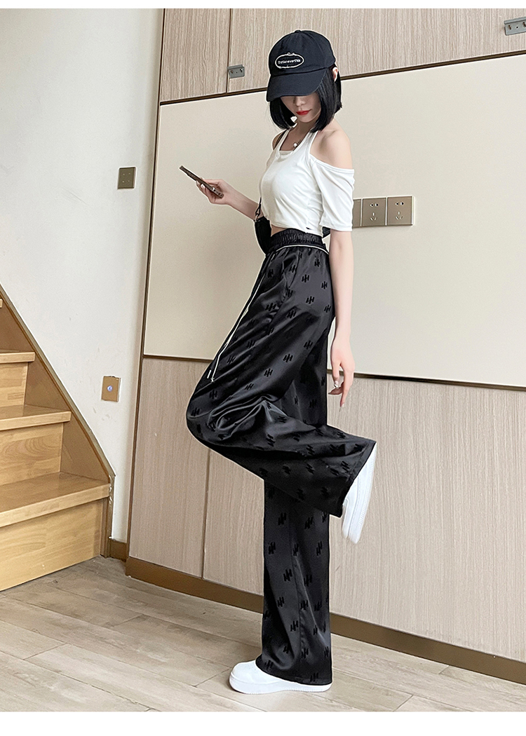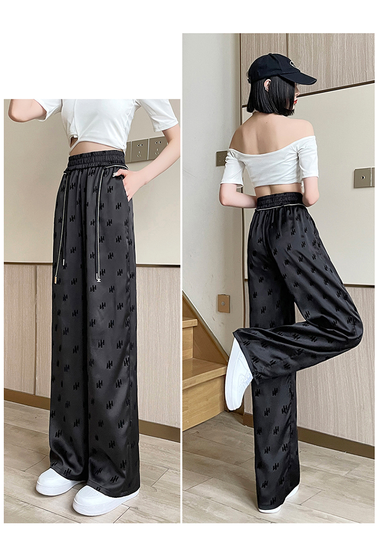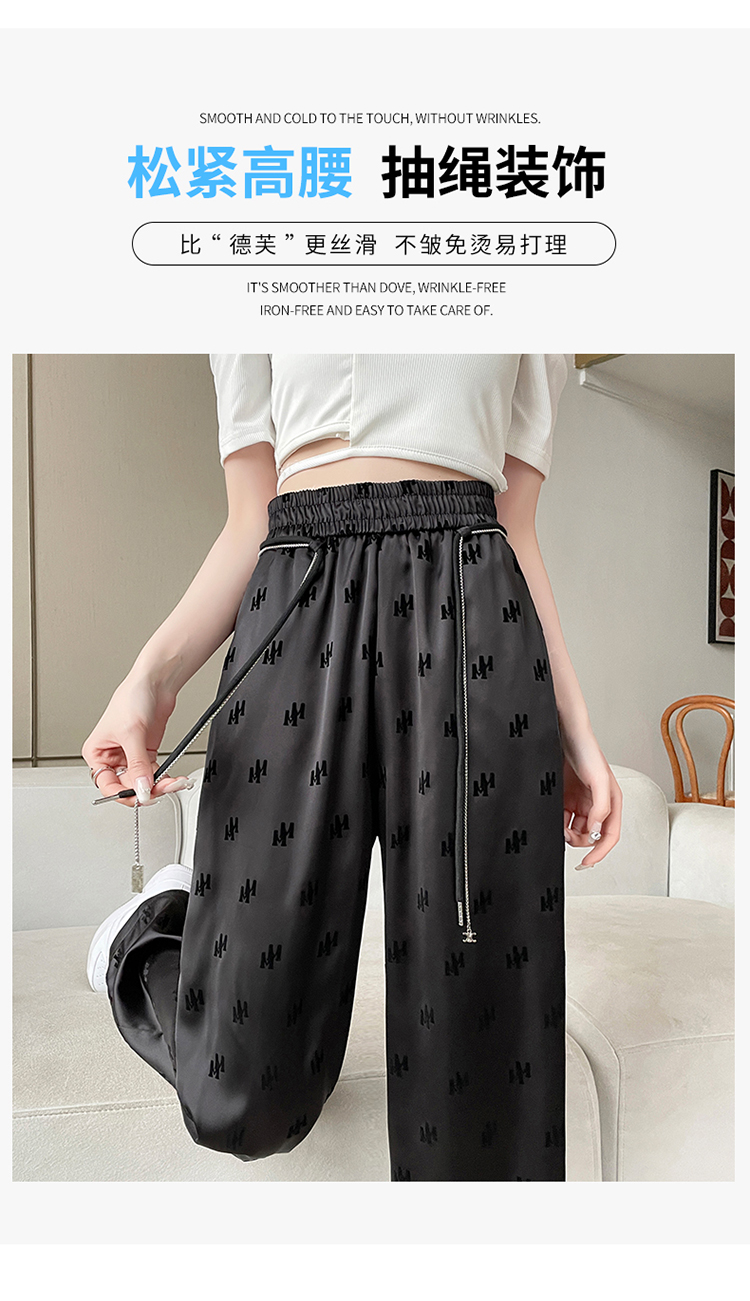 RM9441#雪纺阔腿裤夏季高腰显瘦黑色休闲裤小个子垂感拖地裤子