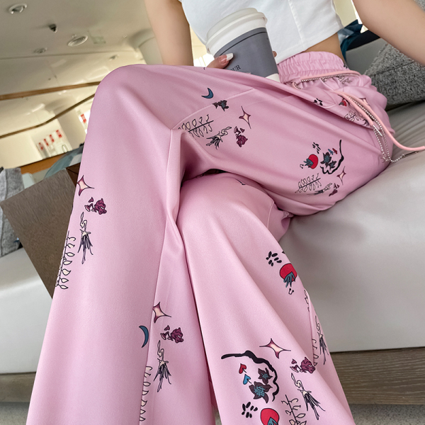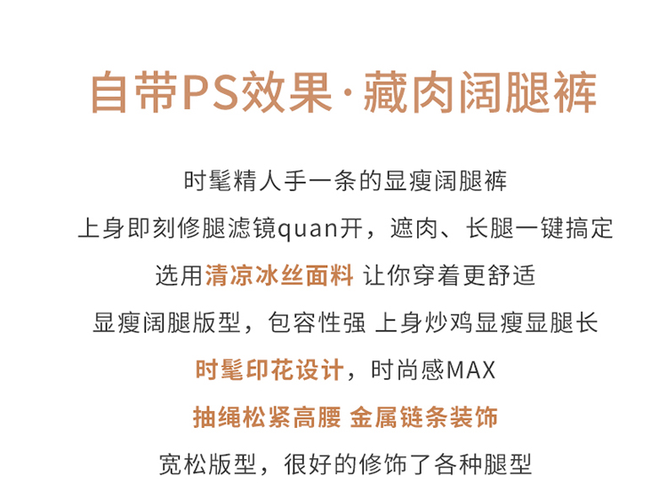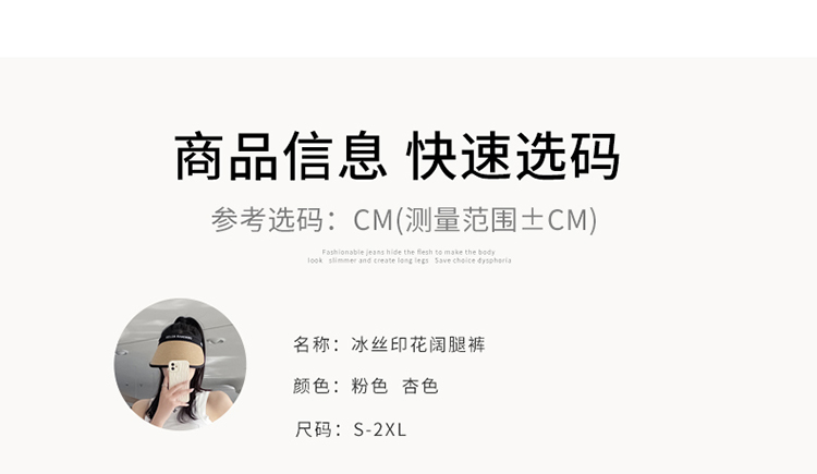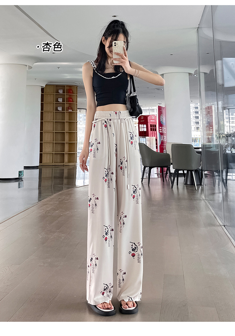 RM9442#印花冰丝阔腿裤女夏宽松拖地高腰垂感休闲防晒凉感窄版直筒裤