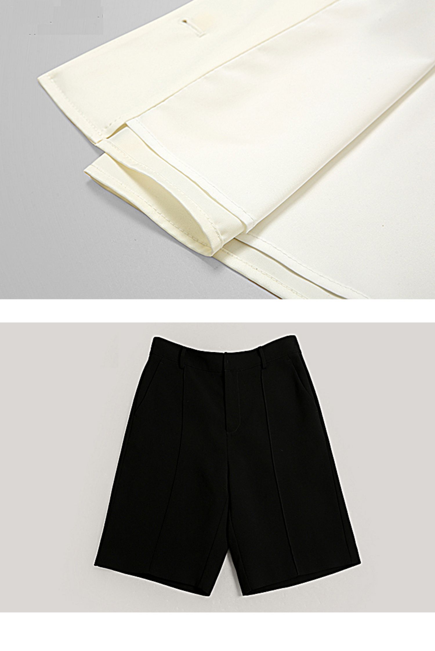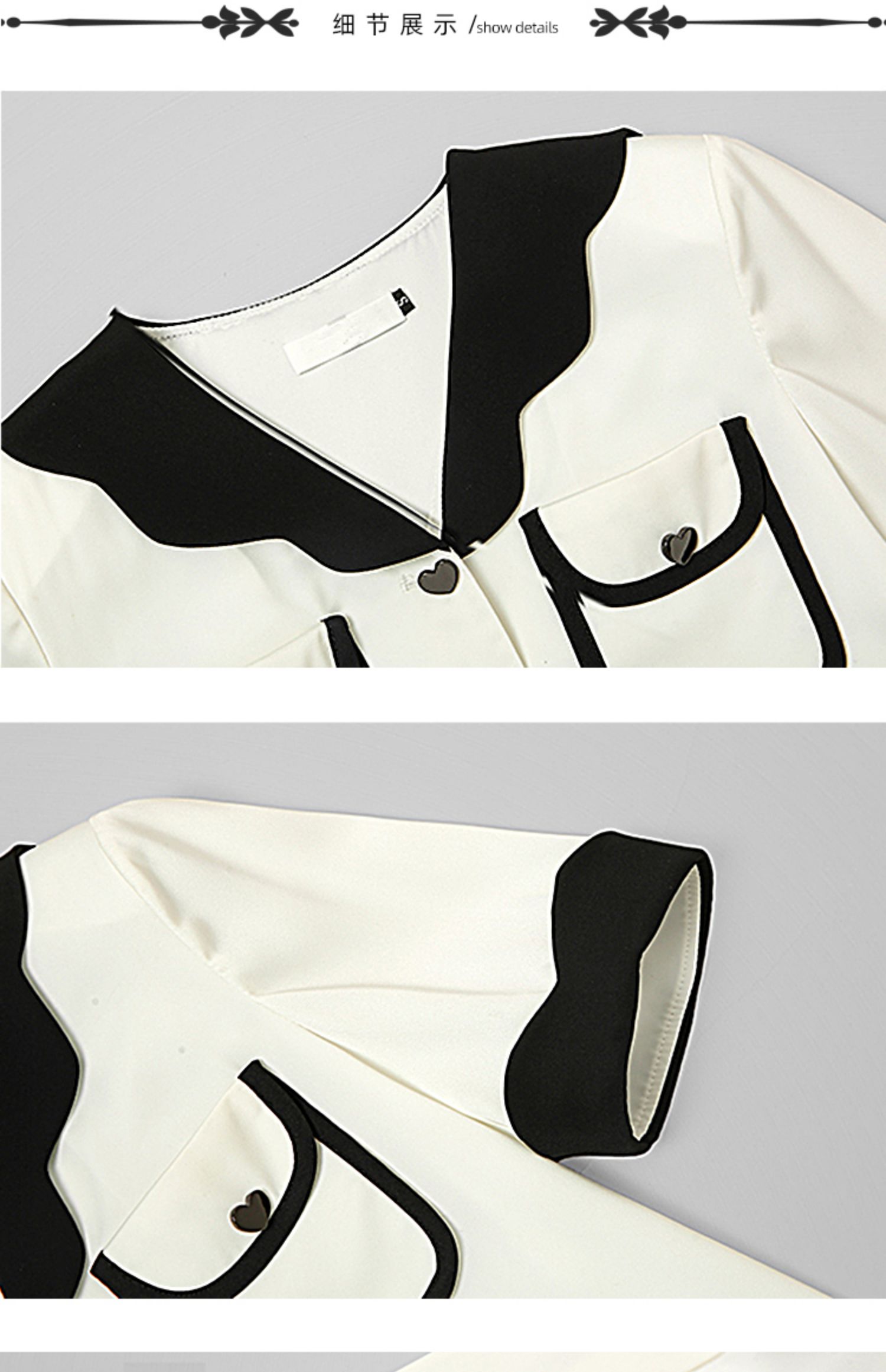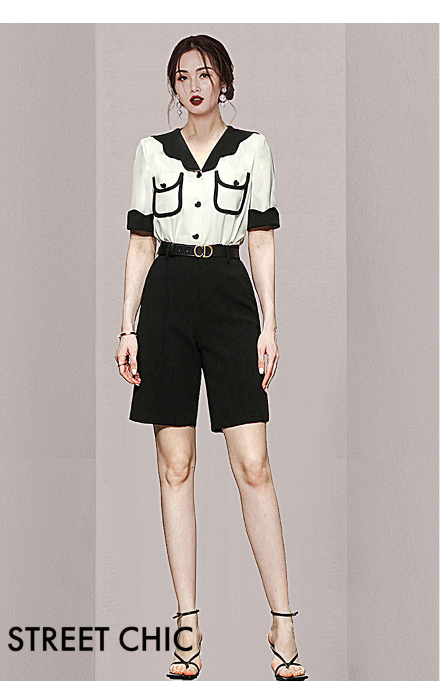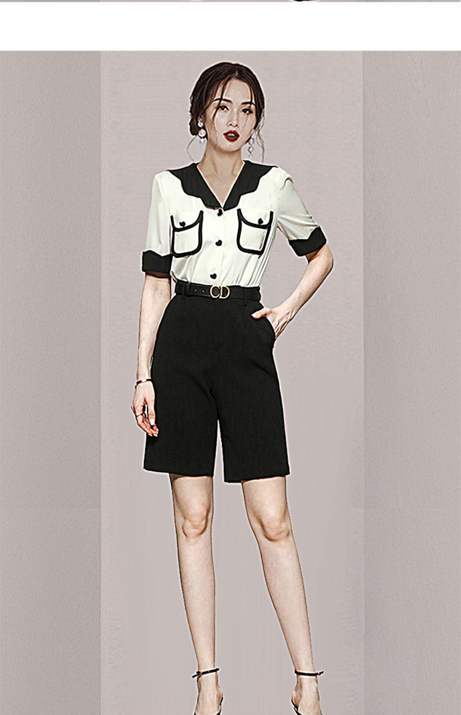 RM9640#夏季新款气质波浪花瓣翻领直筒型短袖衬衣五分短裤套装