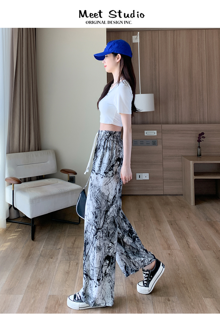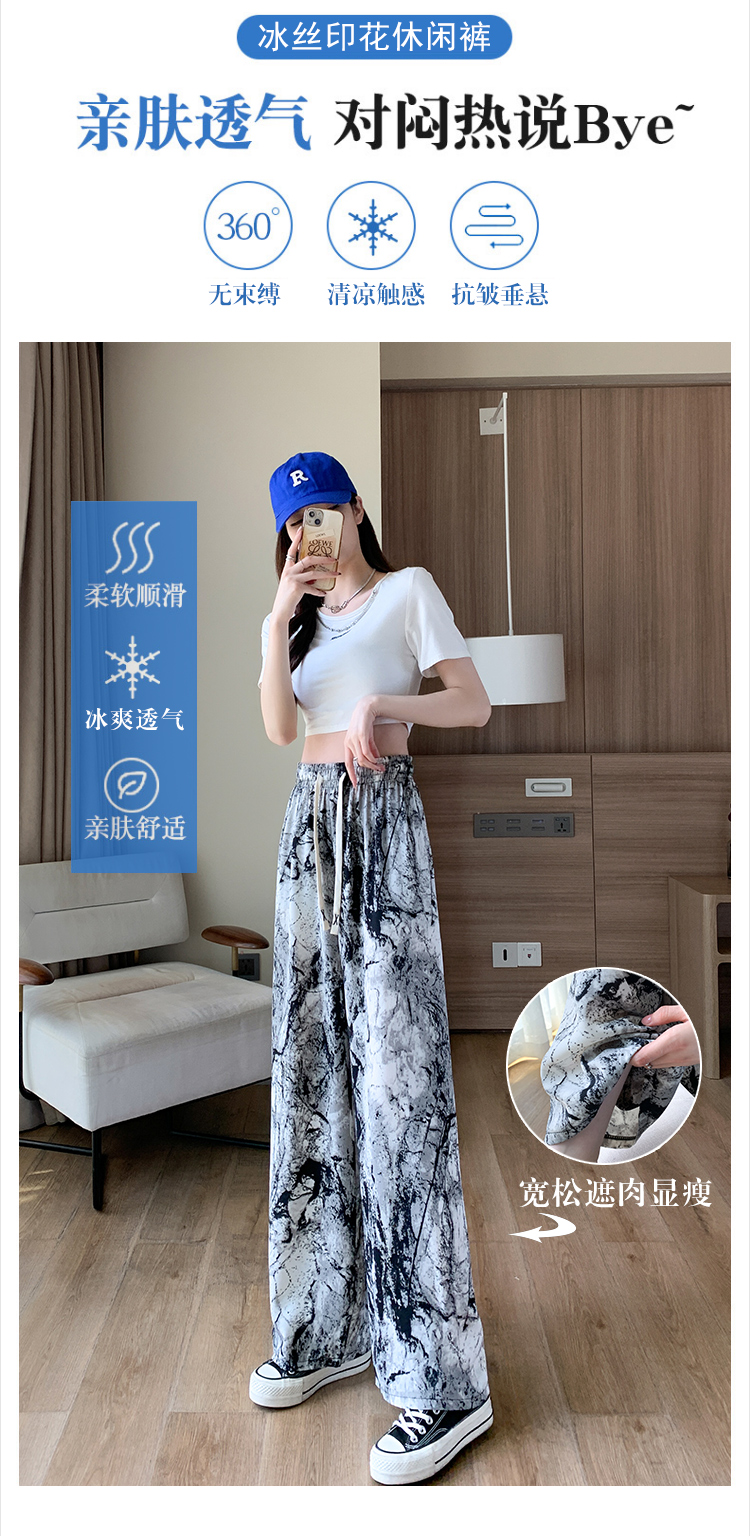 RM9697#冰丝阔腿裤女2023夏季高腰垂感抖抖裤宽松显瘦直筒拖地休闲裤