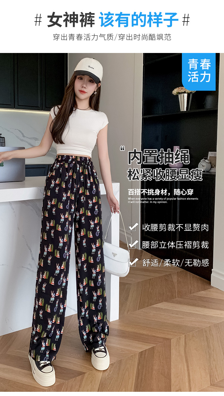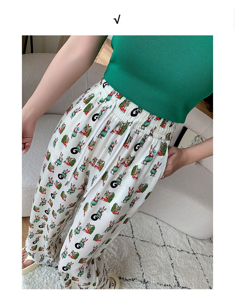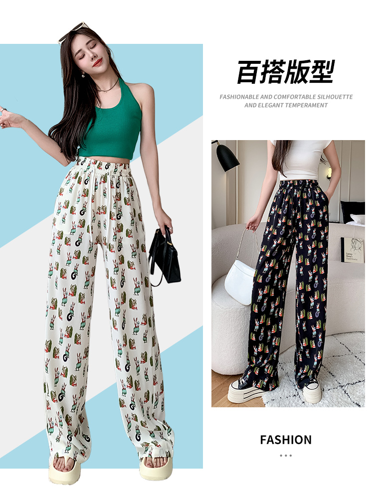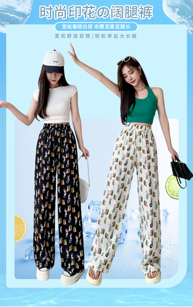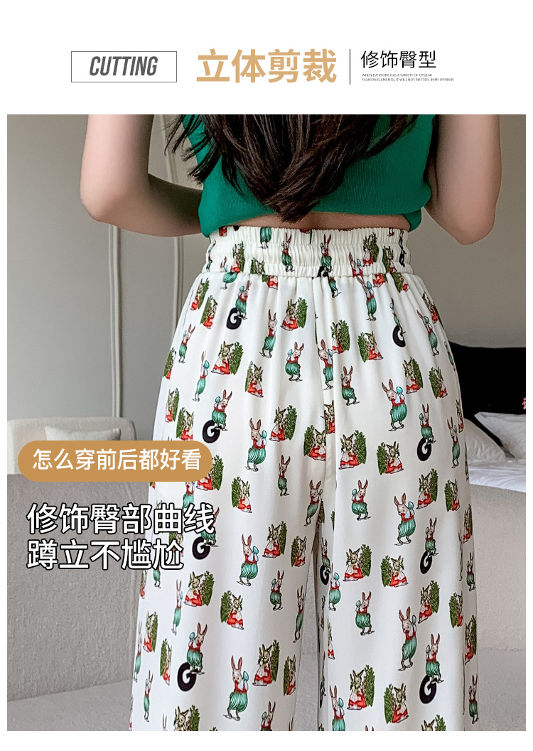 RM9707#兔子印花休闲裤女2023夏季新款宽松显瘦垂感直筒裤夏凉裤