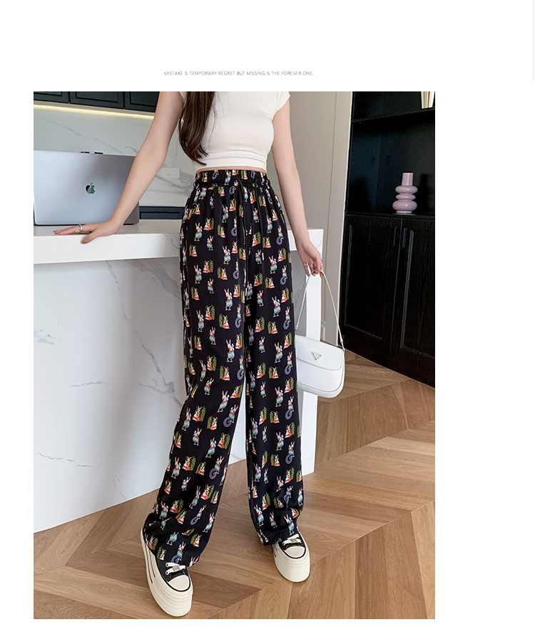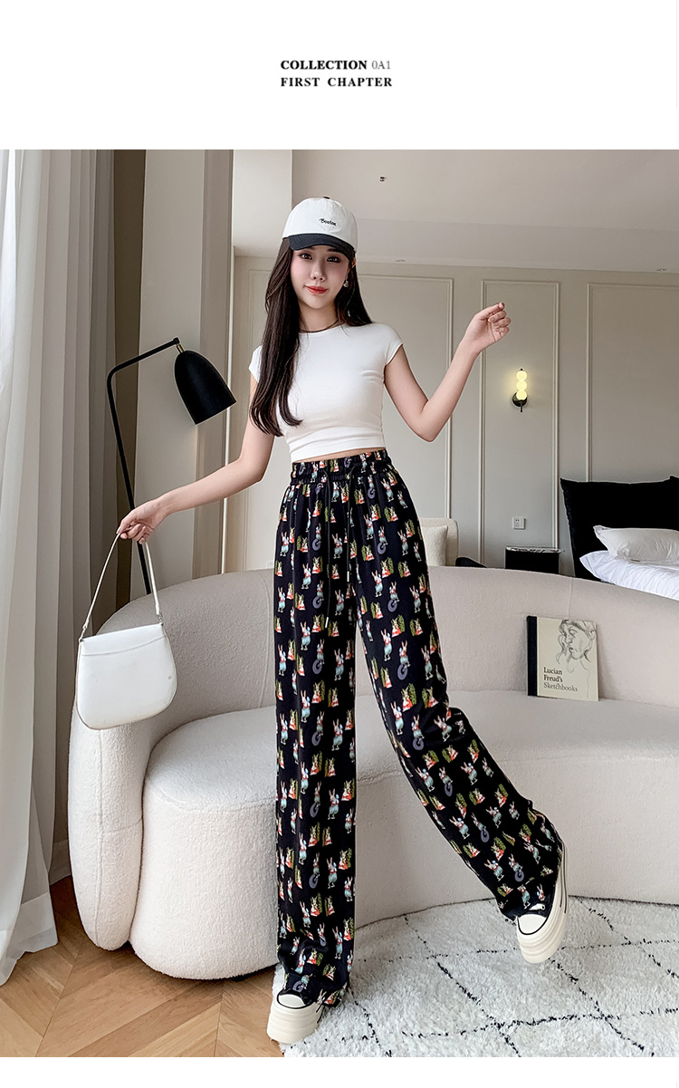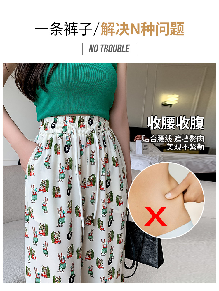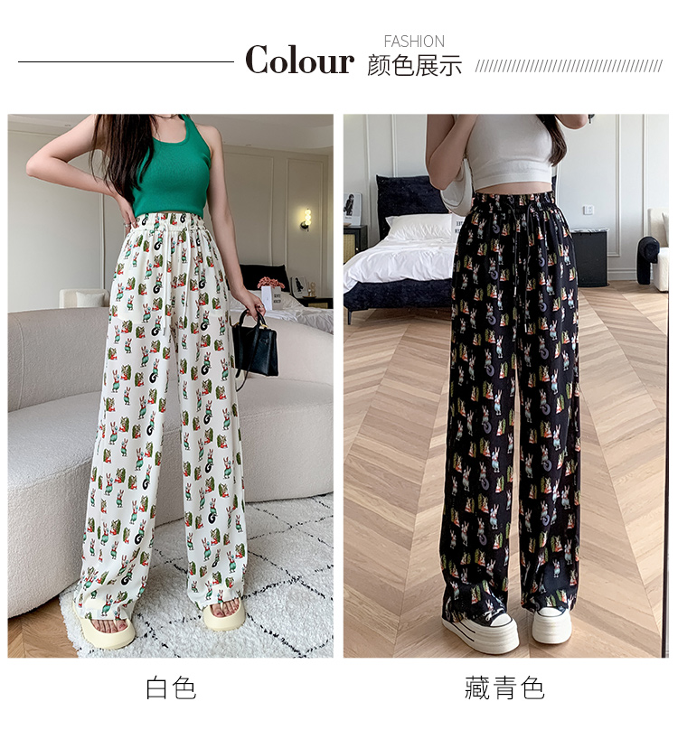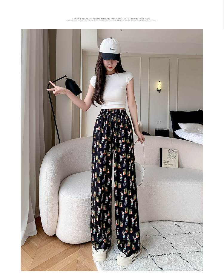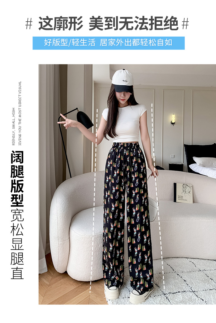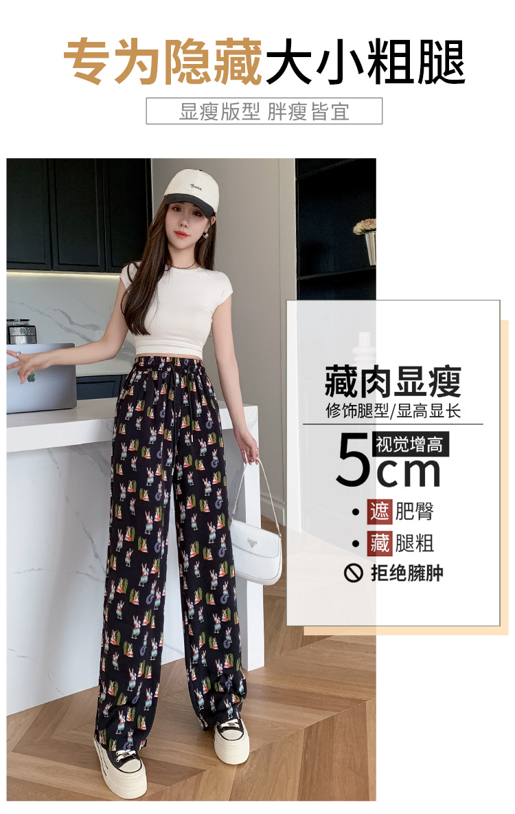 RM9707#兔子印花休闲裤女2023夏季新款宽松显瘦垂感直筒裤夏凉裤