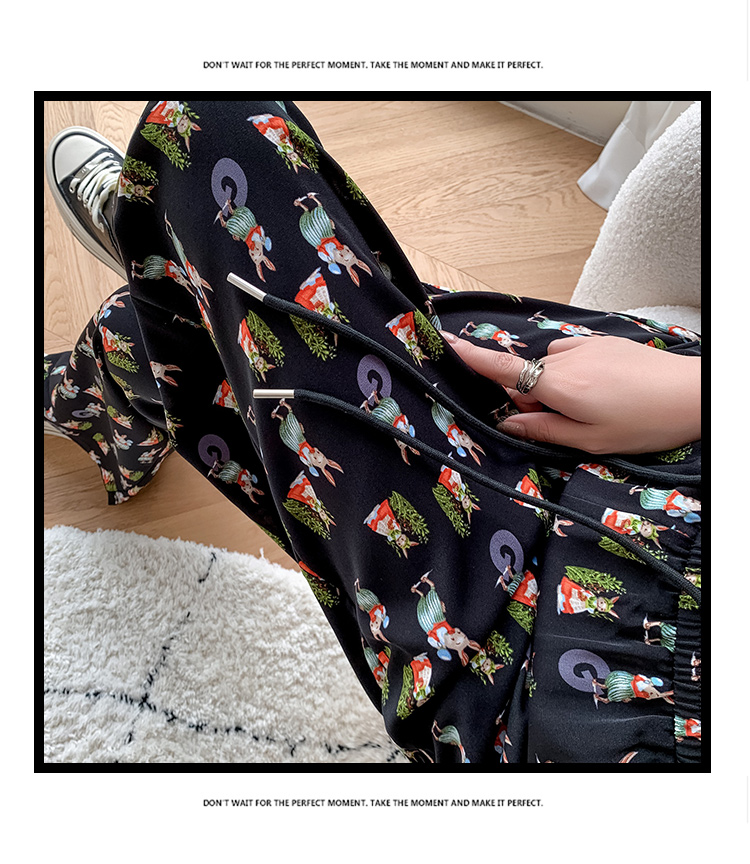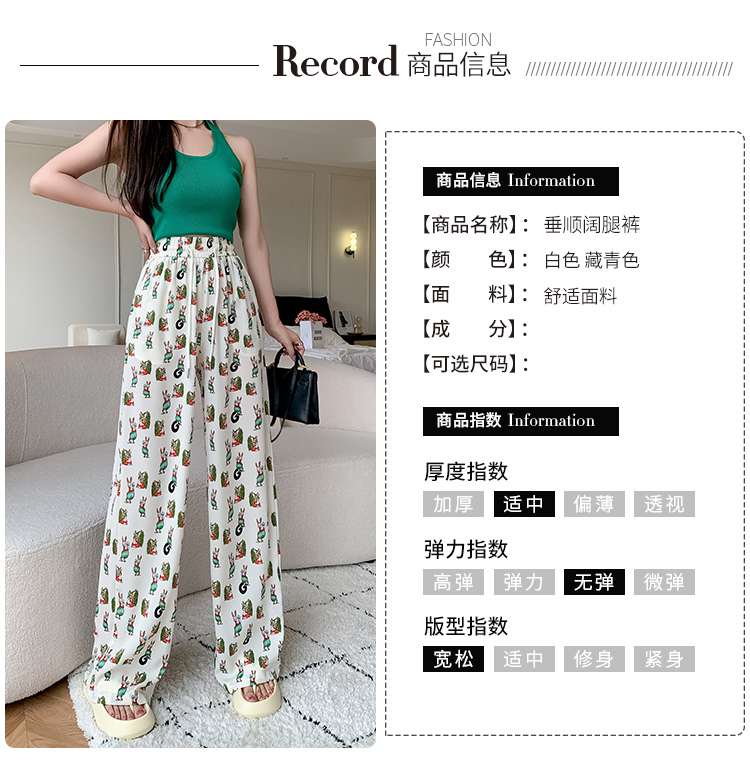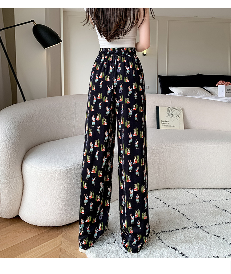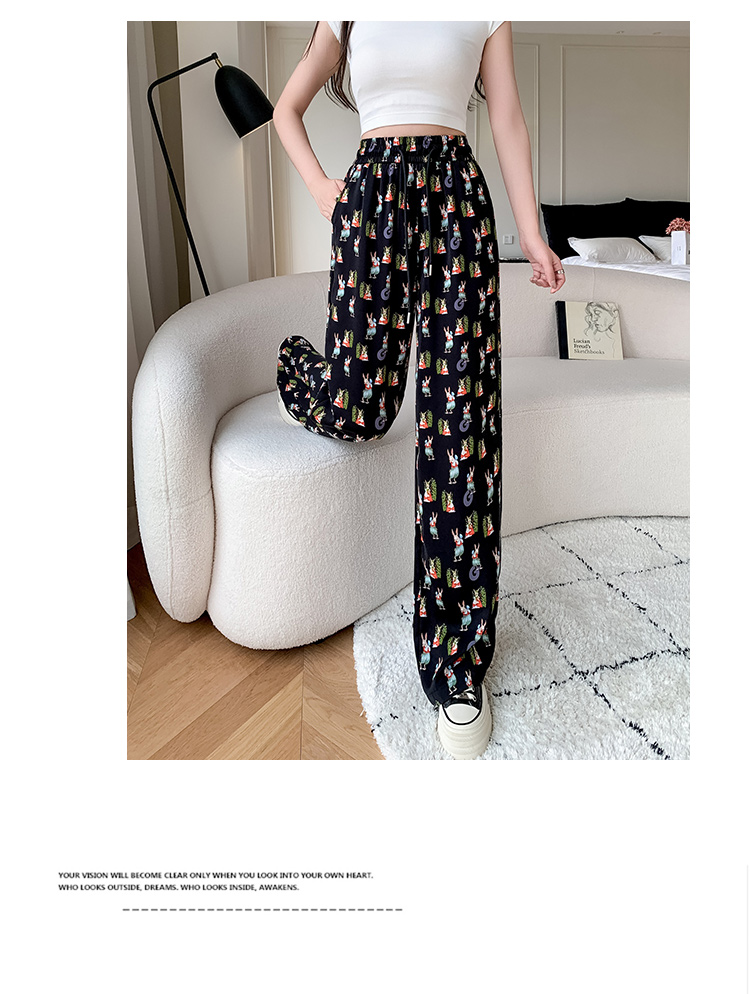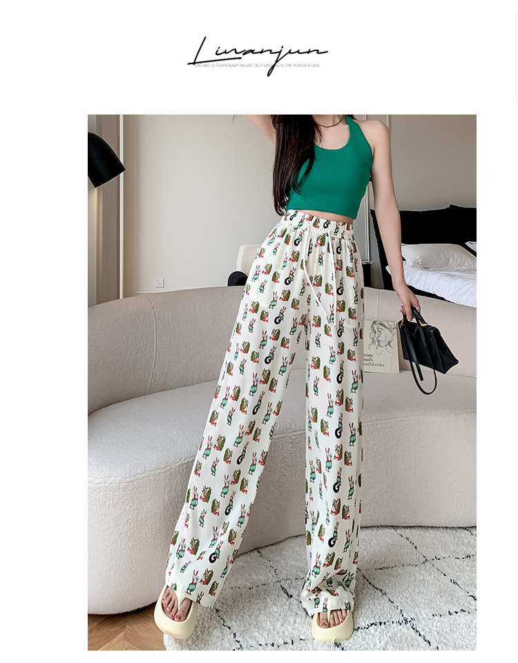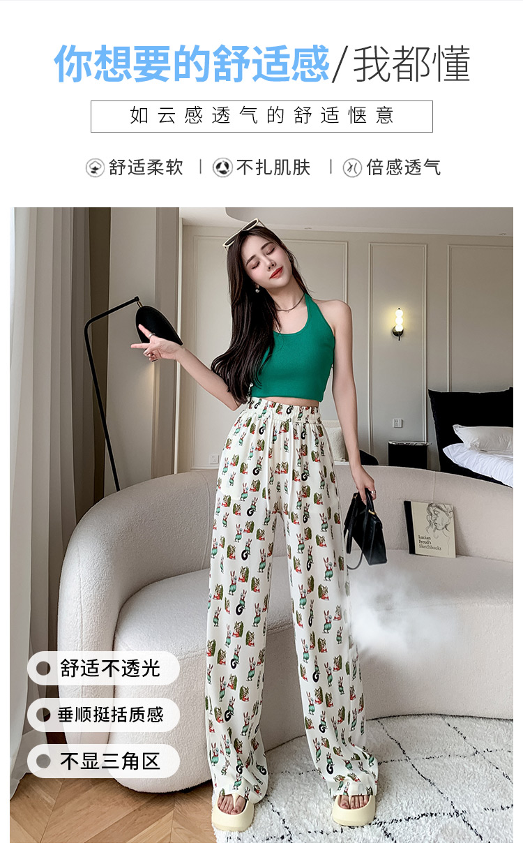 RM9707#兔子印花休闲裤女2023夏季新款宽松显瘦垂感直筒裤夏凉裤