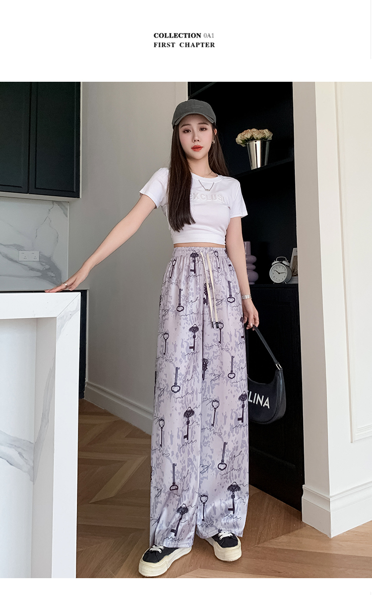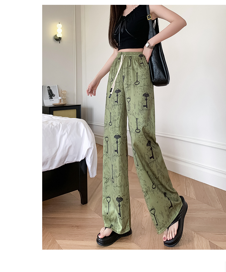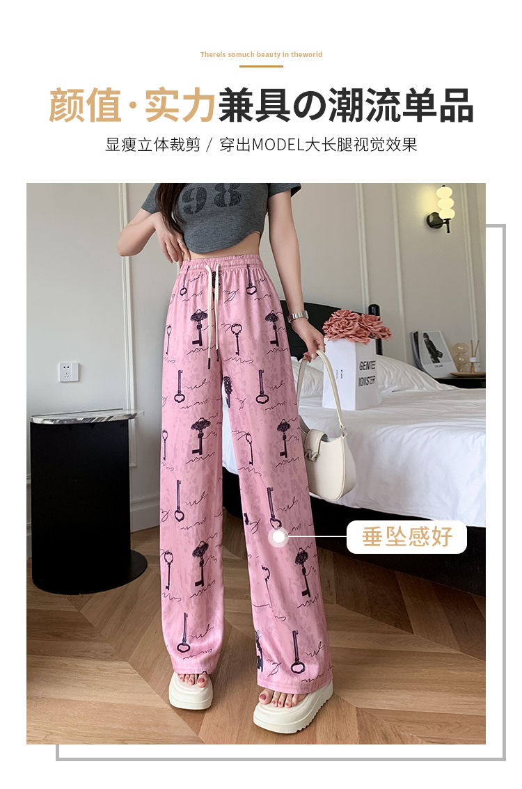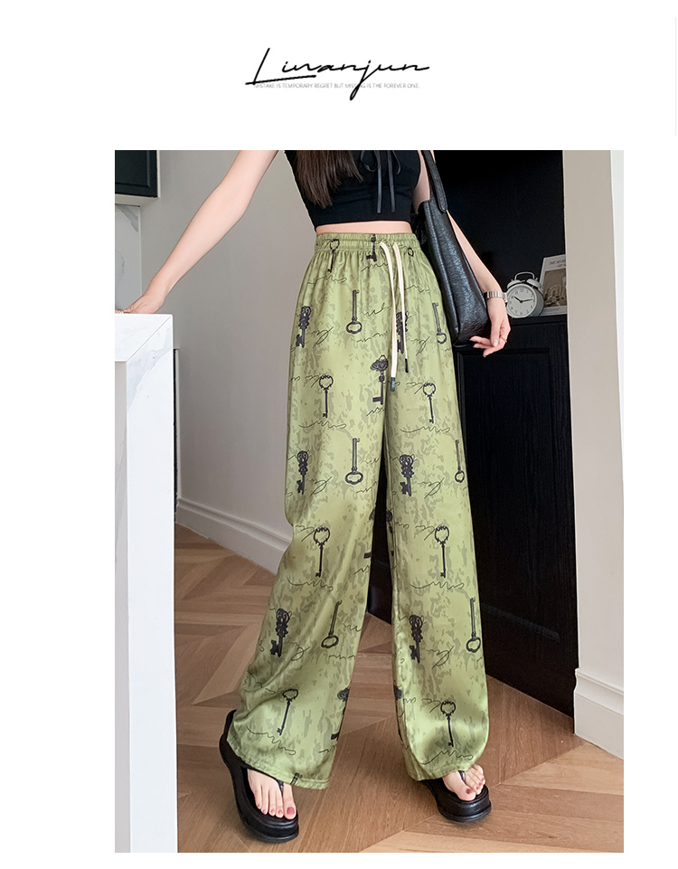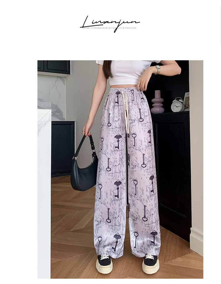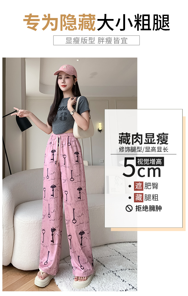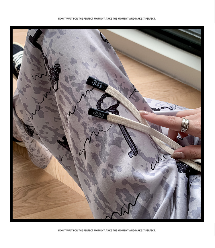 RM9708#阔腿裤女夏季薄款宽松直筒显瘦高腰垂感印花缎面休闲拖地裤子