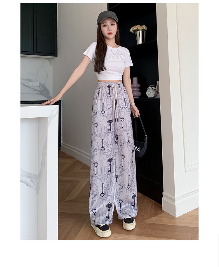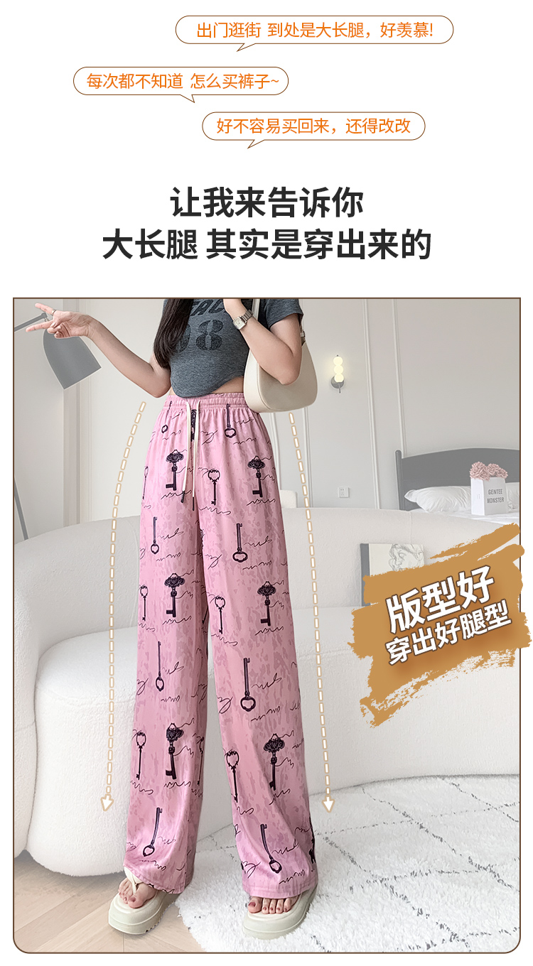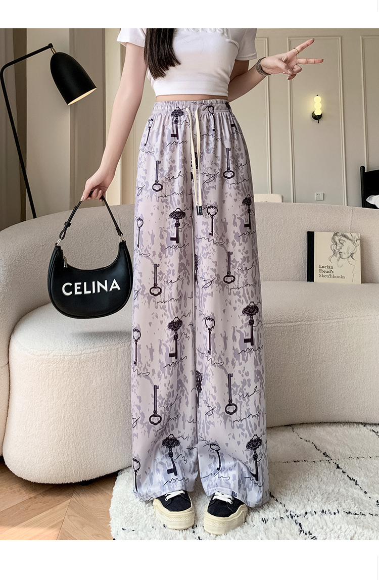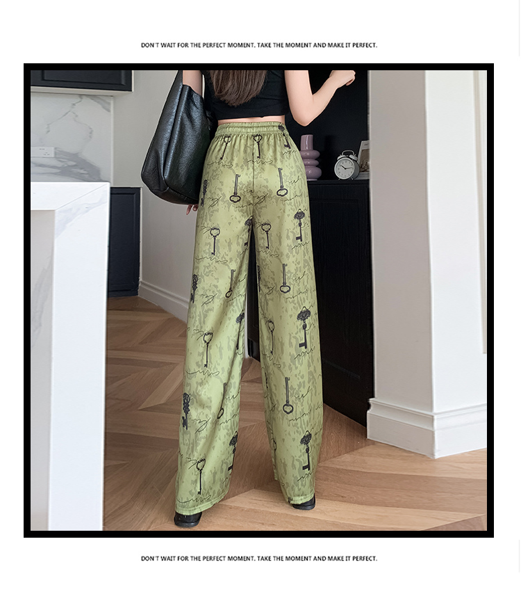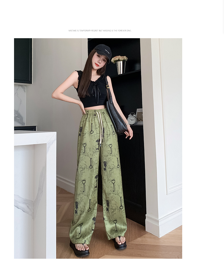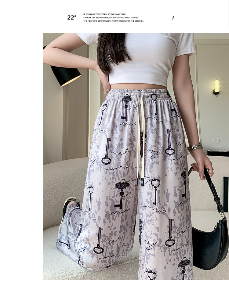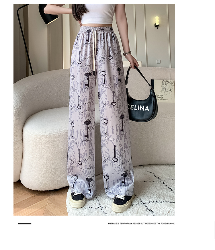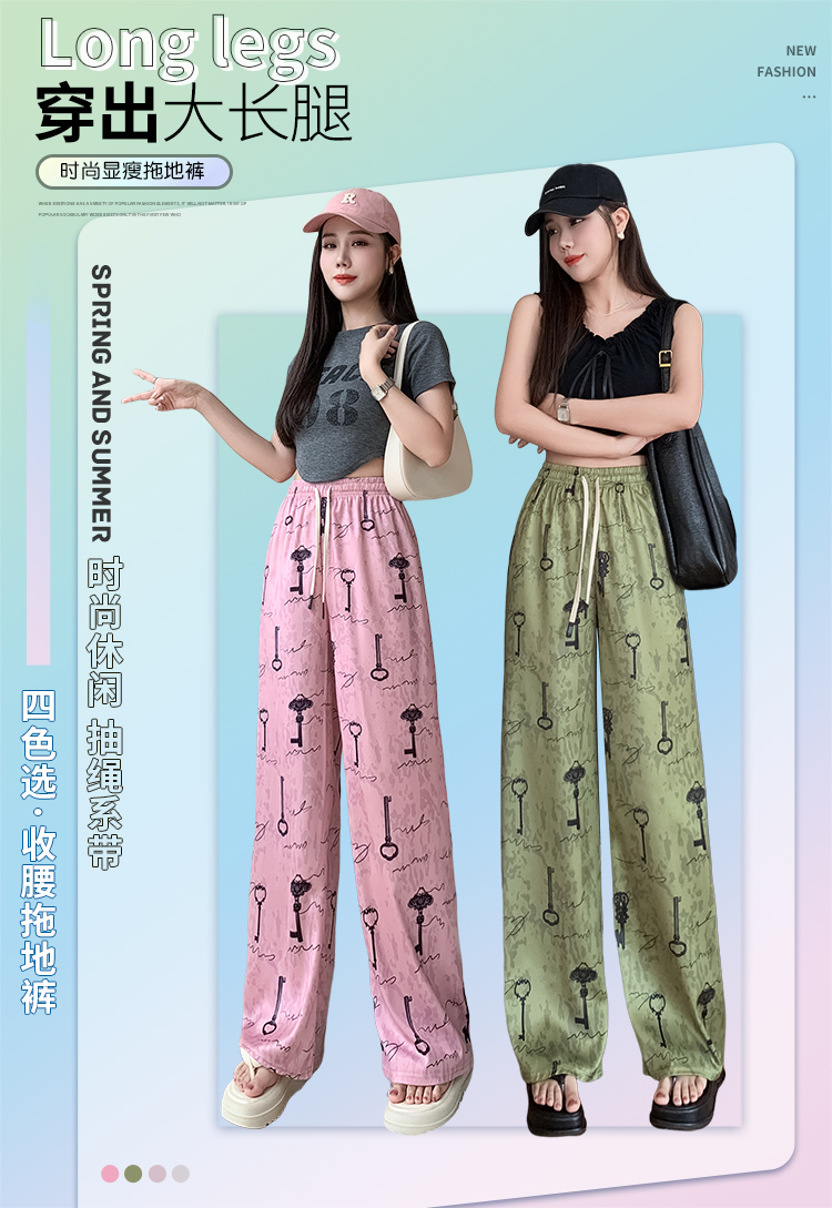 RM9708#阔腿裤女夏季薄款宽松直筒显瘦高腰垂感印花缎面休闲拖地裤子
