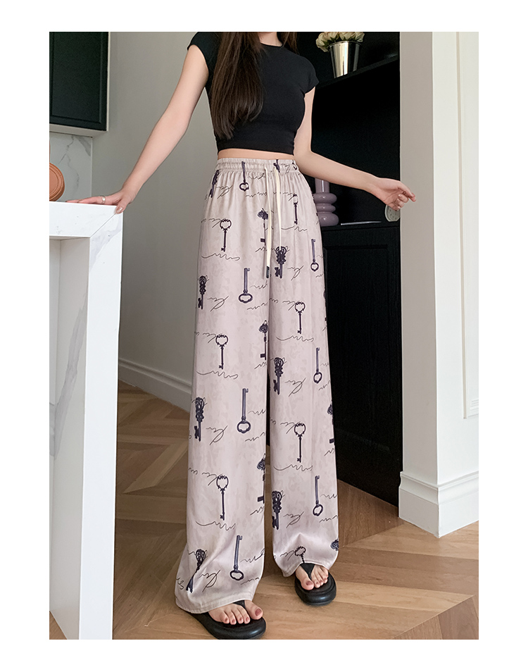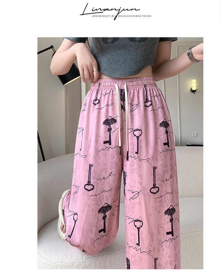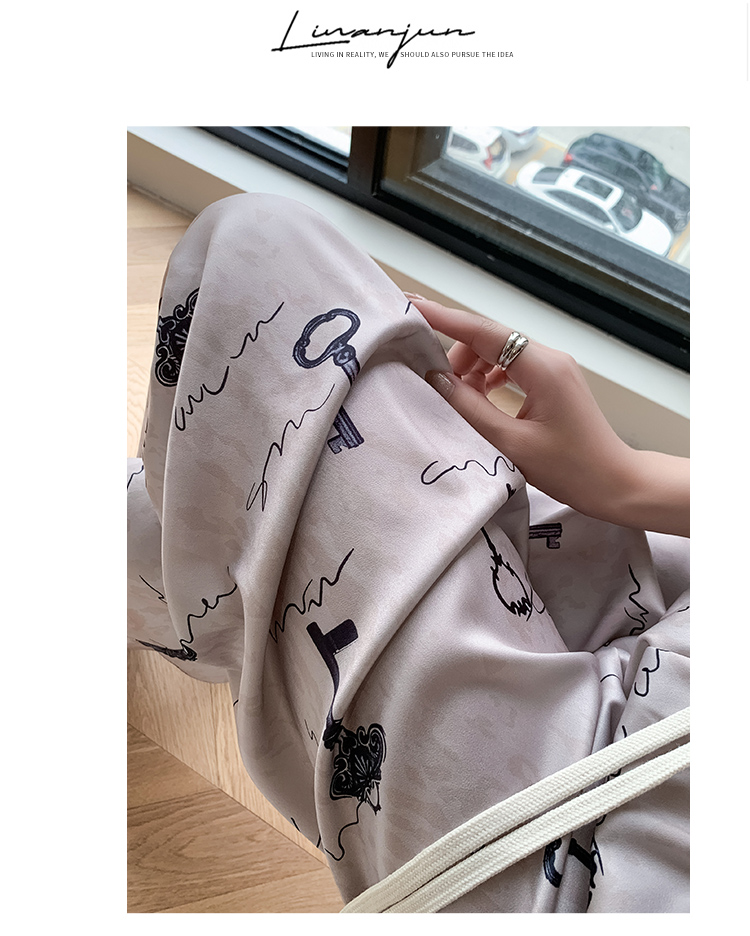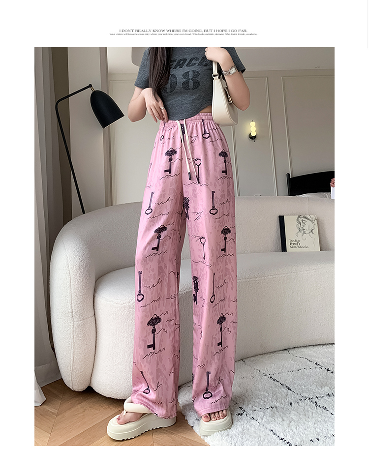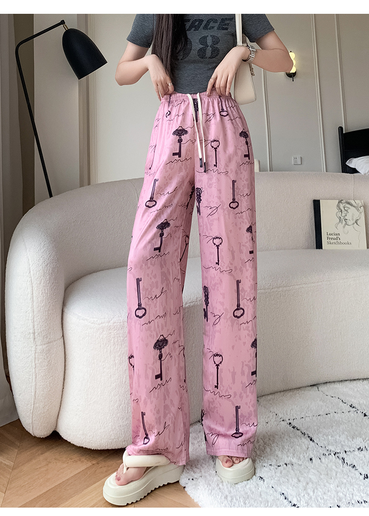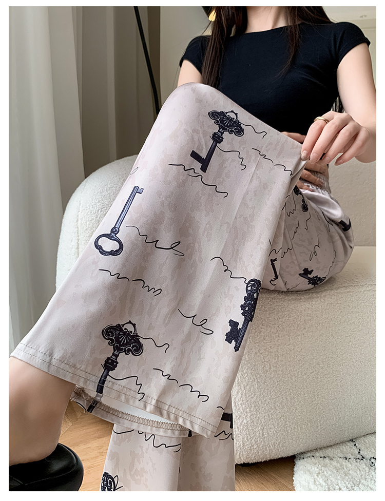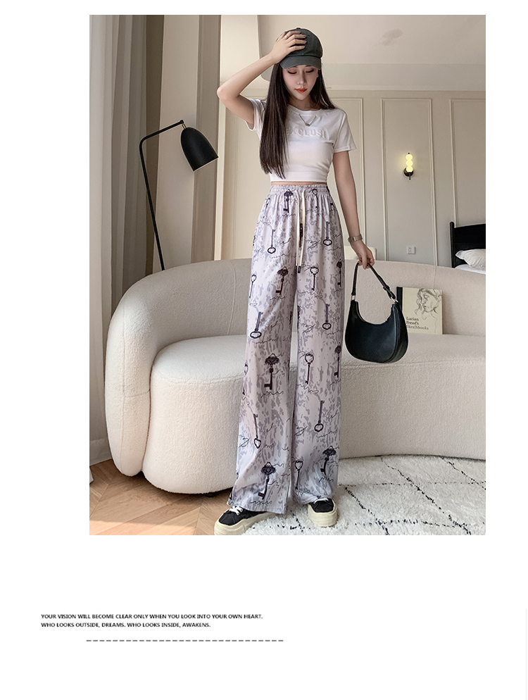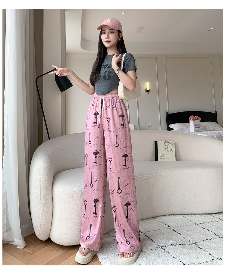 RM9708#阔腿裤女夏季薄款宽松直筒显瘦高腰垂感印花缎面休闲拖地裤子