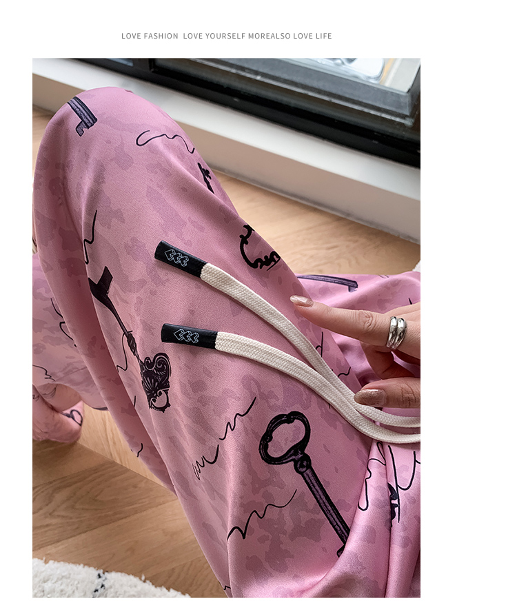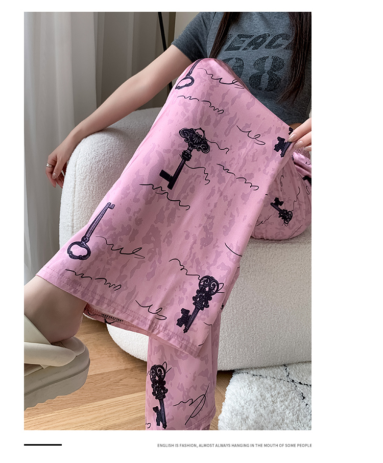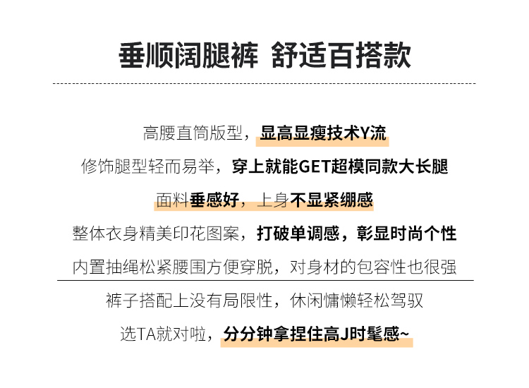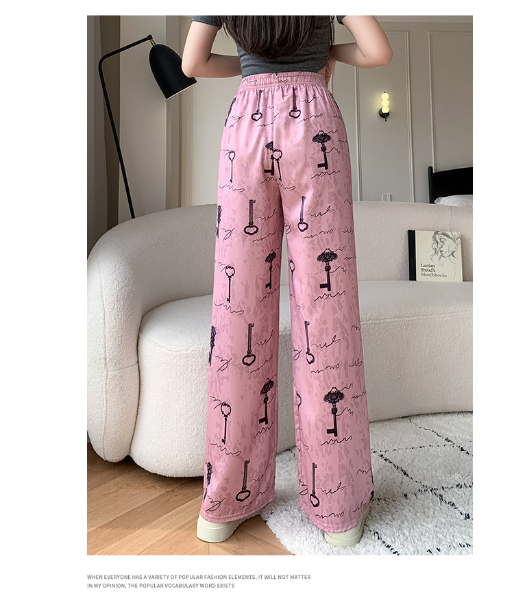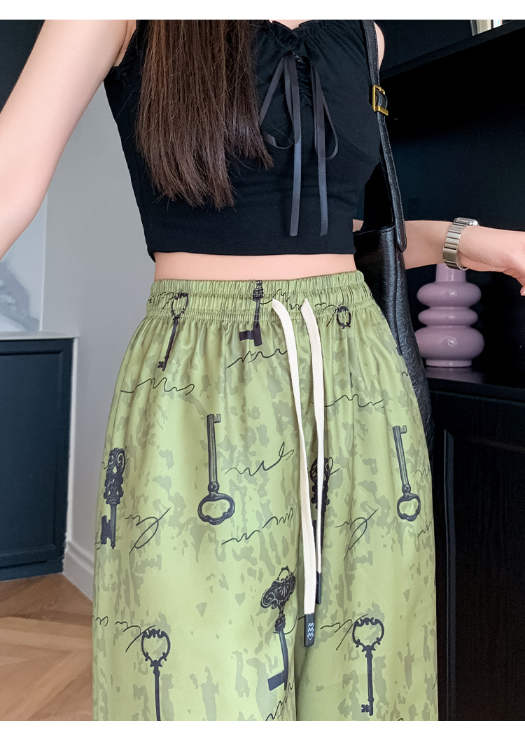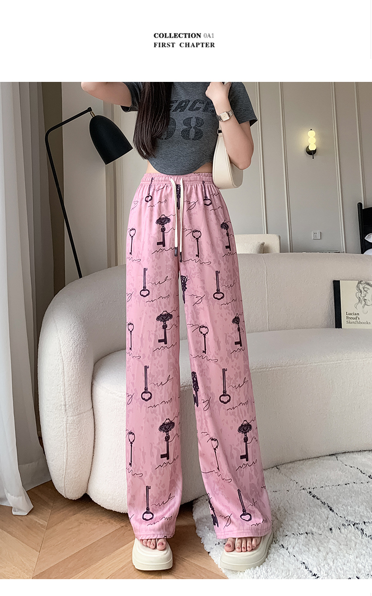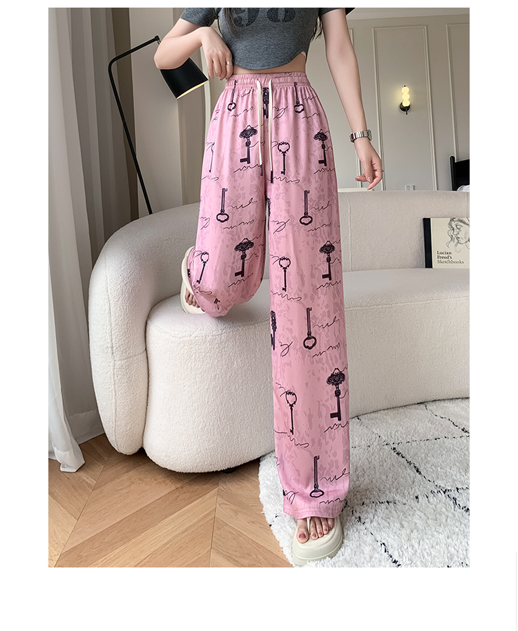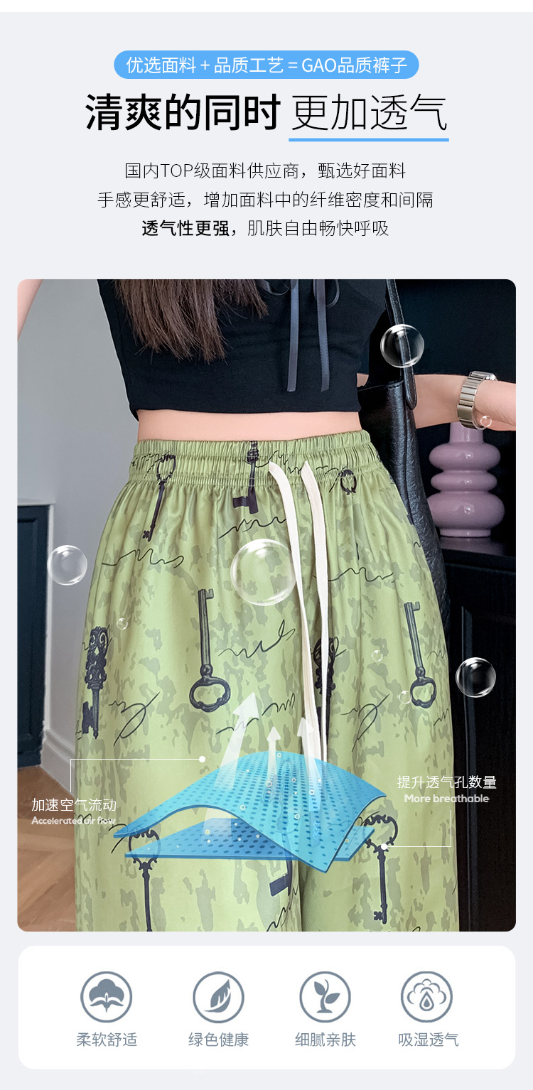 RM9708#阔腿裤女夏季薄款宽松直筒显瘦高腰垂感印花缎面休闲拖地裤子