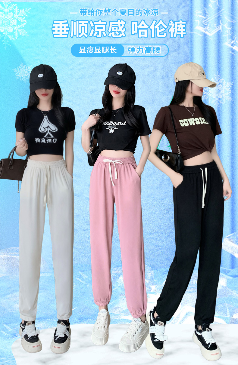 RM9710#冰丝运动裤女夏季薄款宽松休闲裤2023新款灯笼束脚裤防蚊裤
