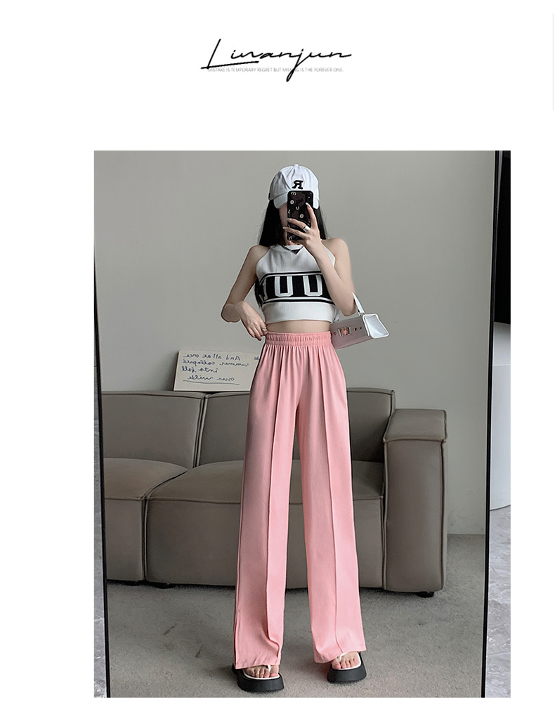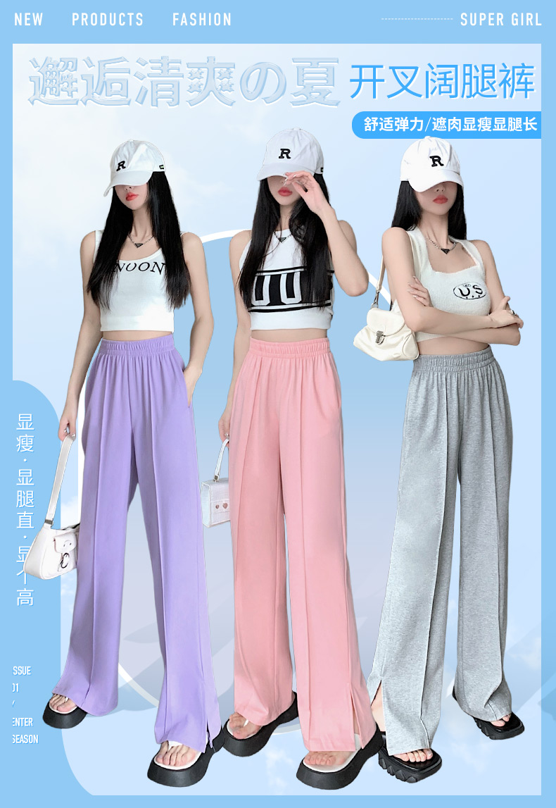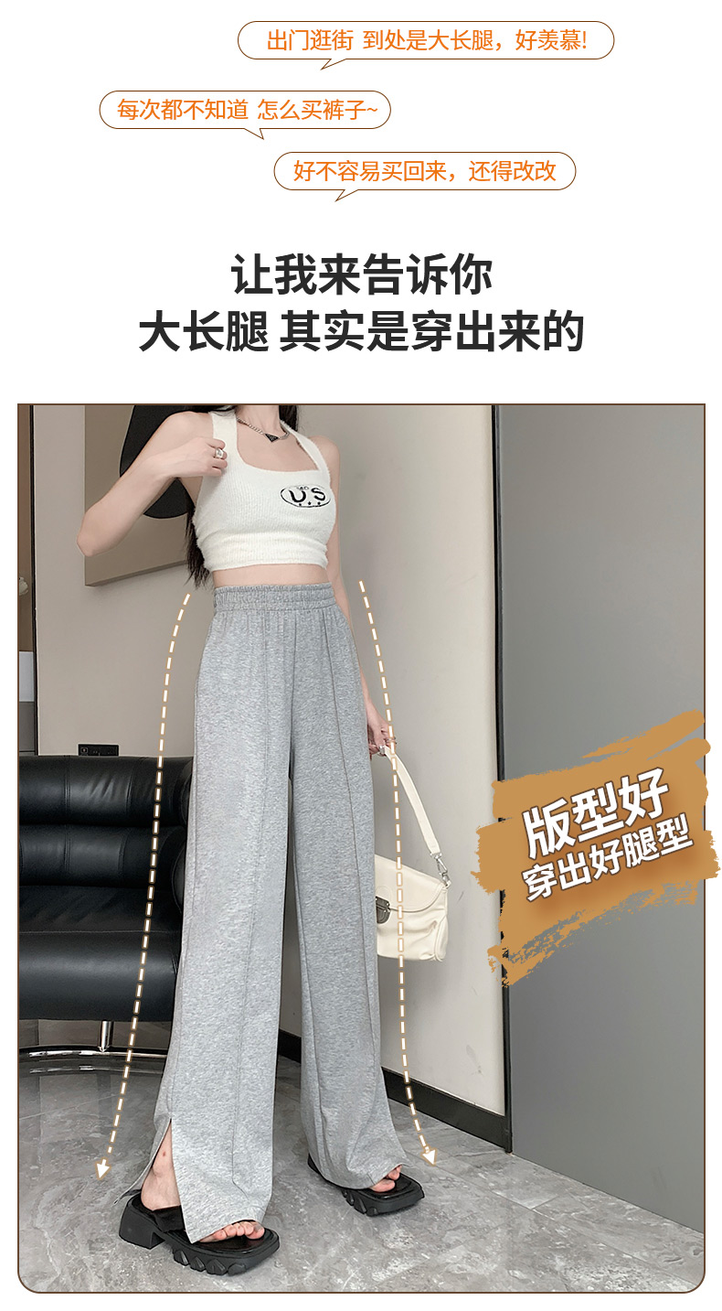 RM9713#针织运动裤女2023新款夏季显瘦宽松薄款垂感直筒休闲阔腿裤