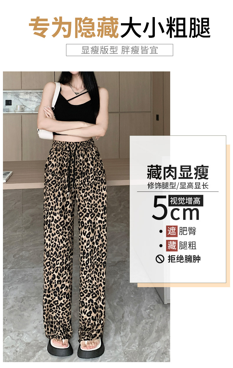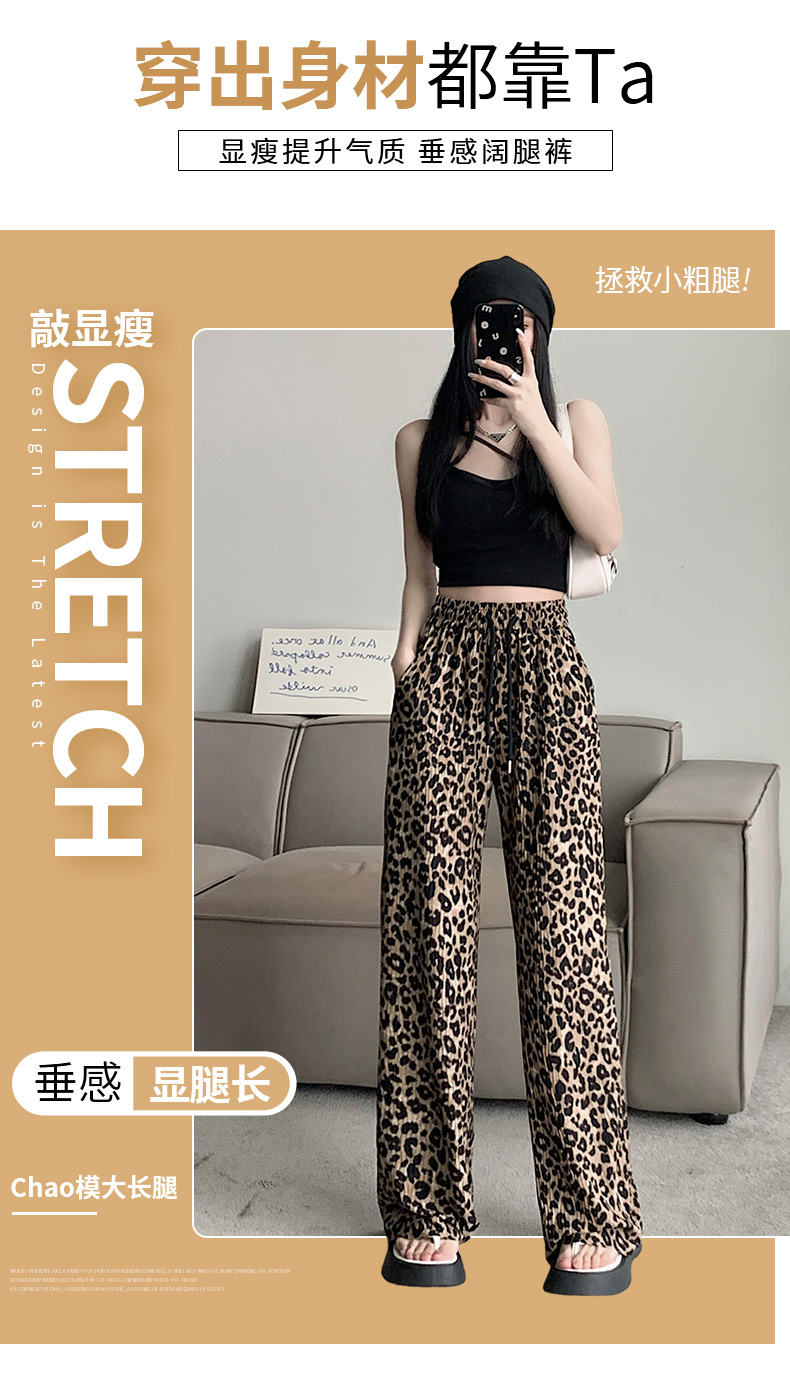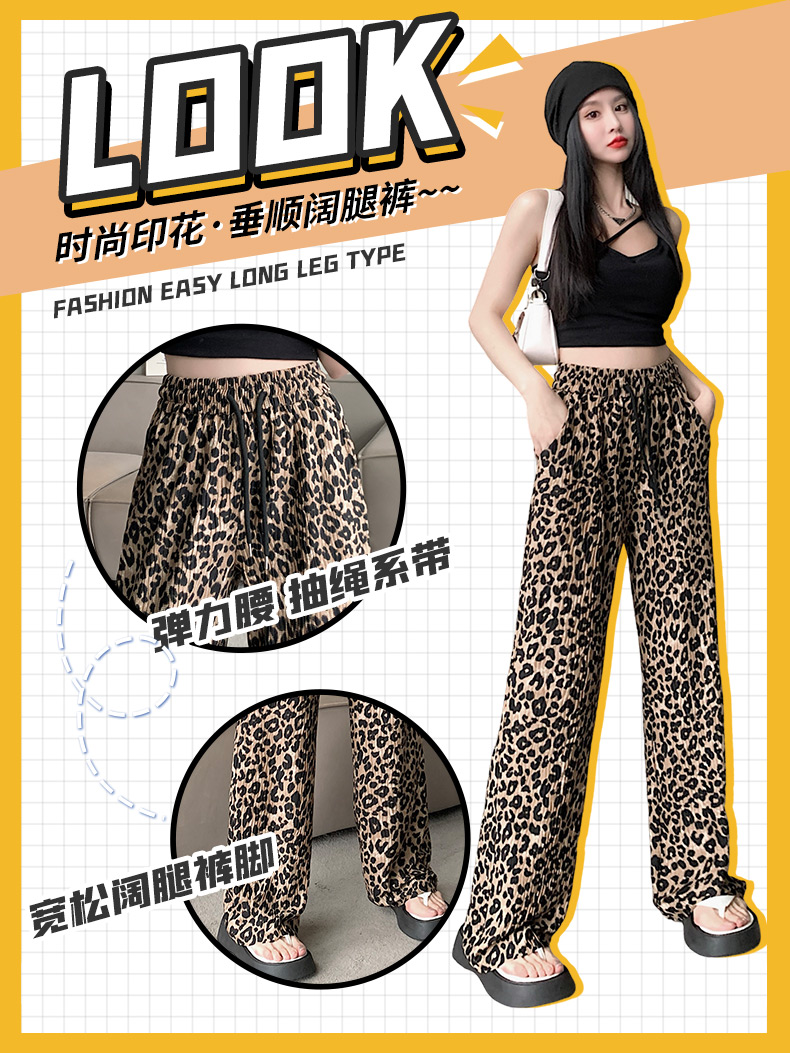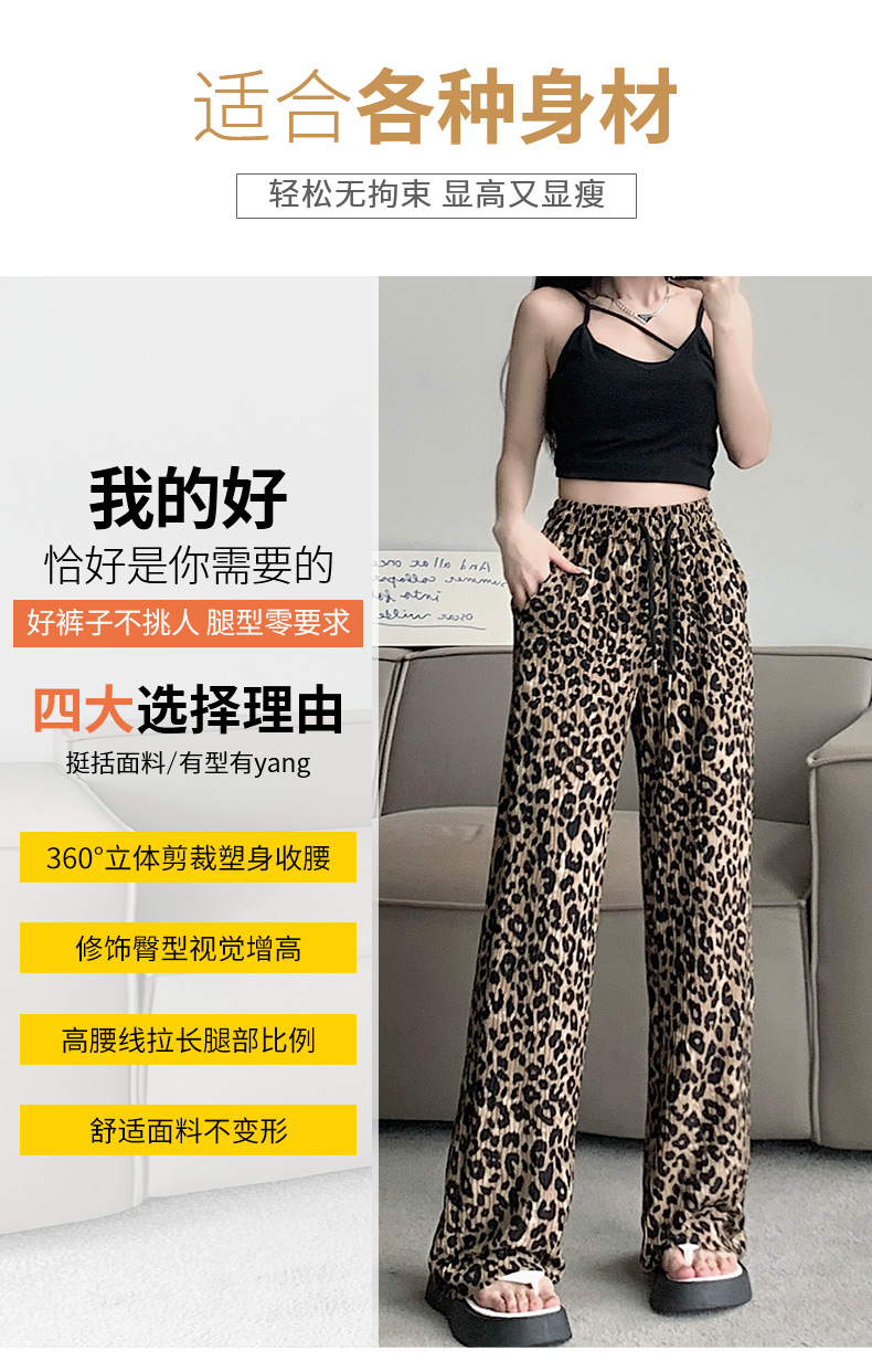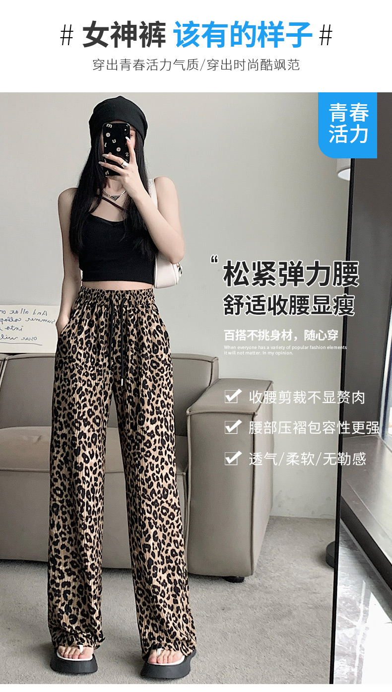 RM9714#豹纹冰丝阔腿裤女2023夏季新款凉凉高腰垂感拖地裤宽松休闲裤
