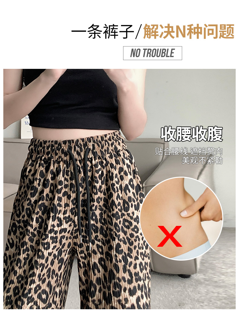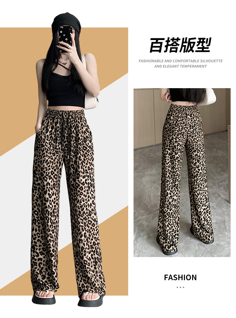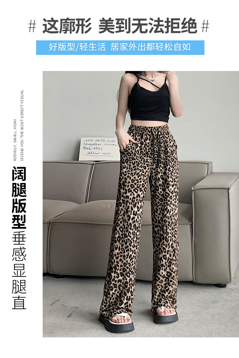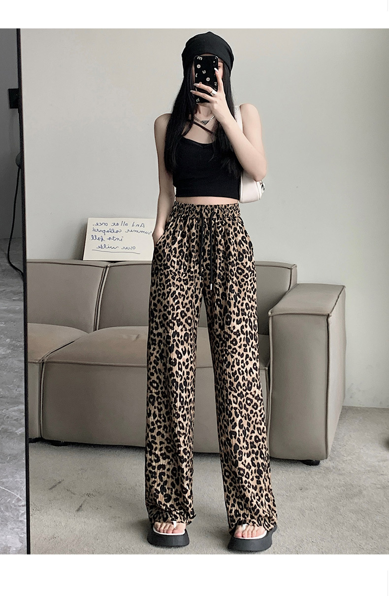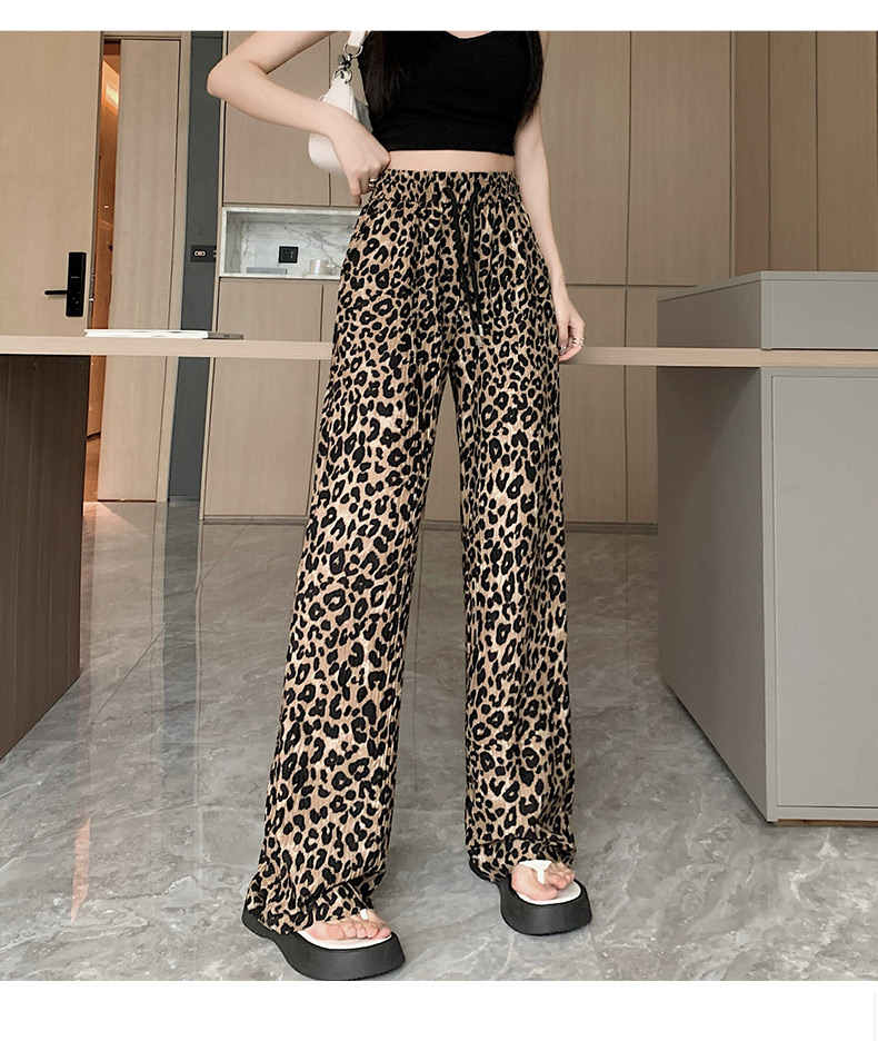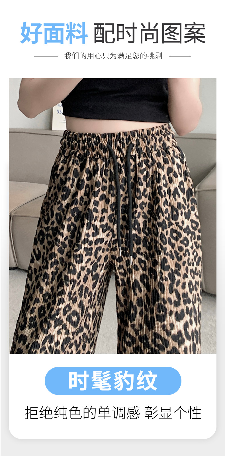 RM9714#豹纹冰丝阔腿裤女2023夏季新款凉凉高腰垂感拖地裤宽松休闲裤