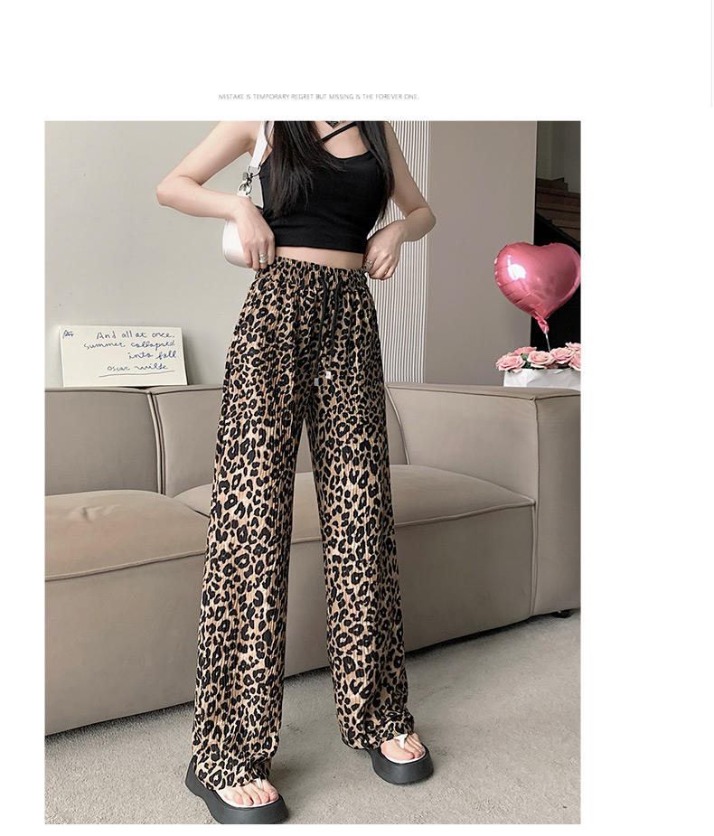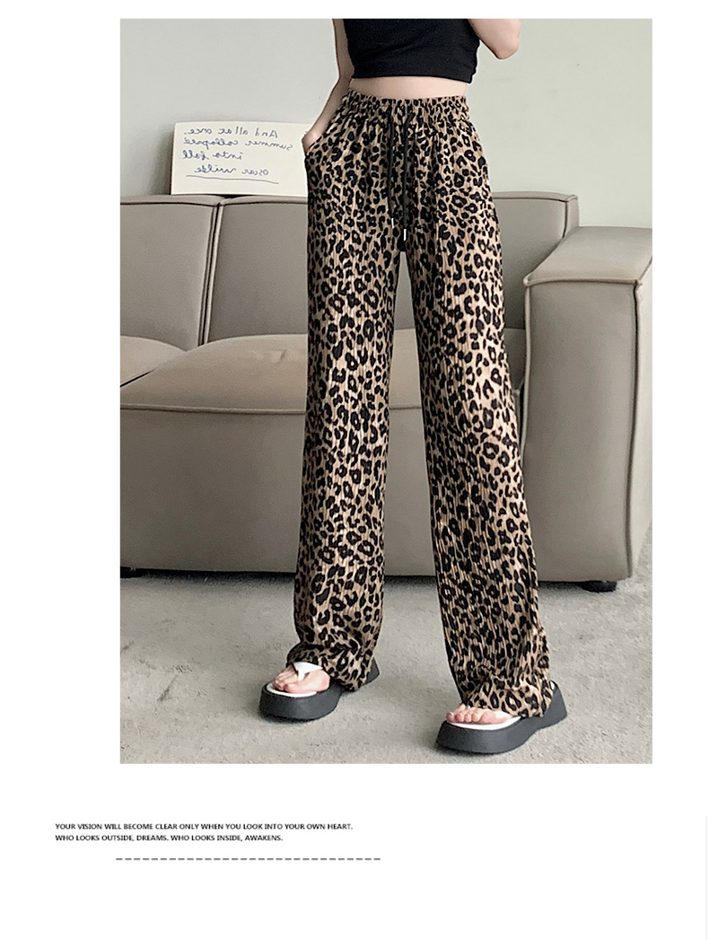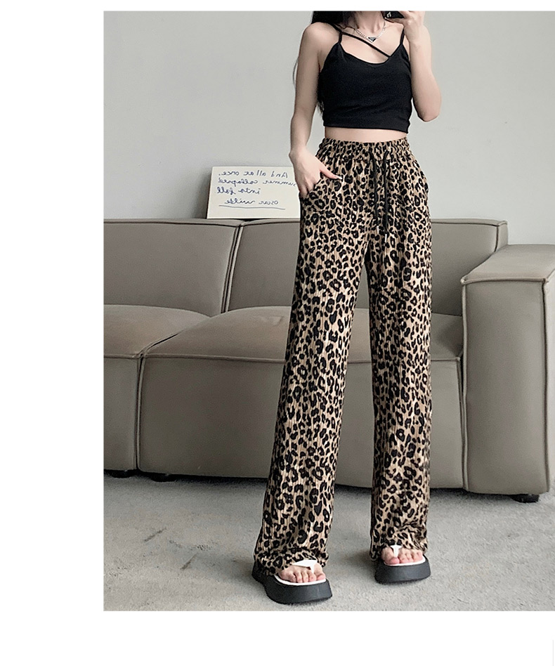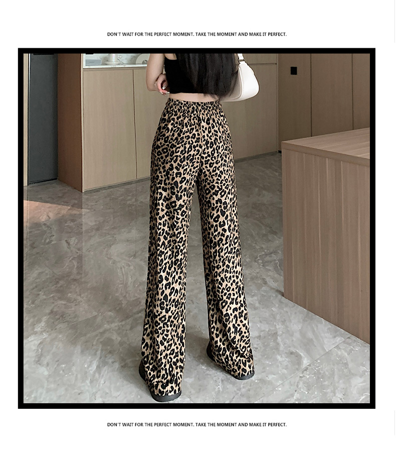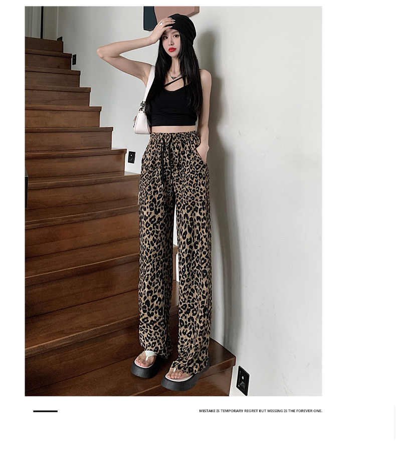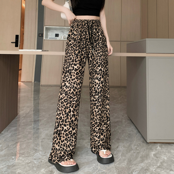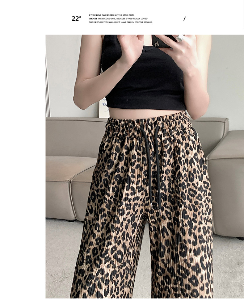 RM9714#豹纹冰丝阔腿裤女2023夏季新款凉凉高腰垂感拖地裤宽松休闲裤