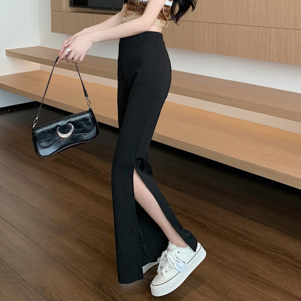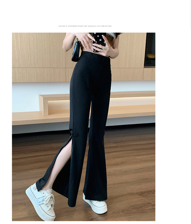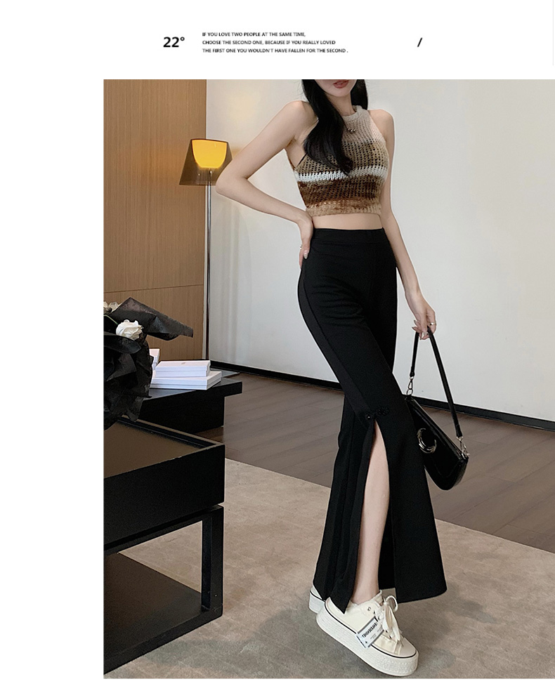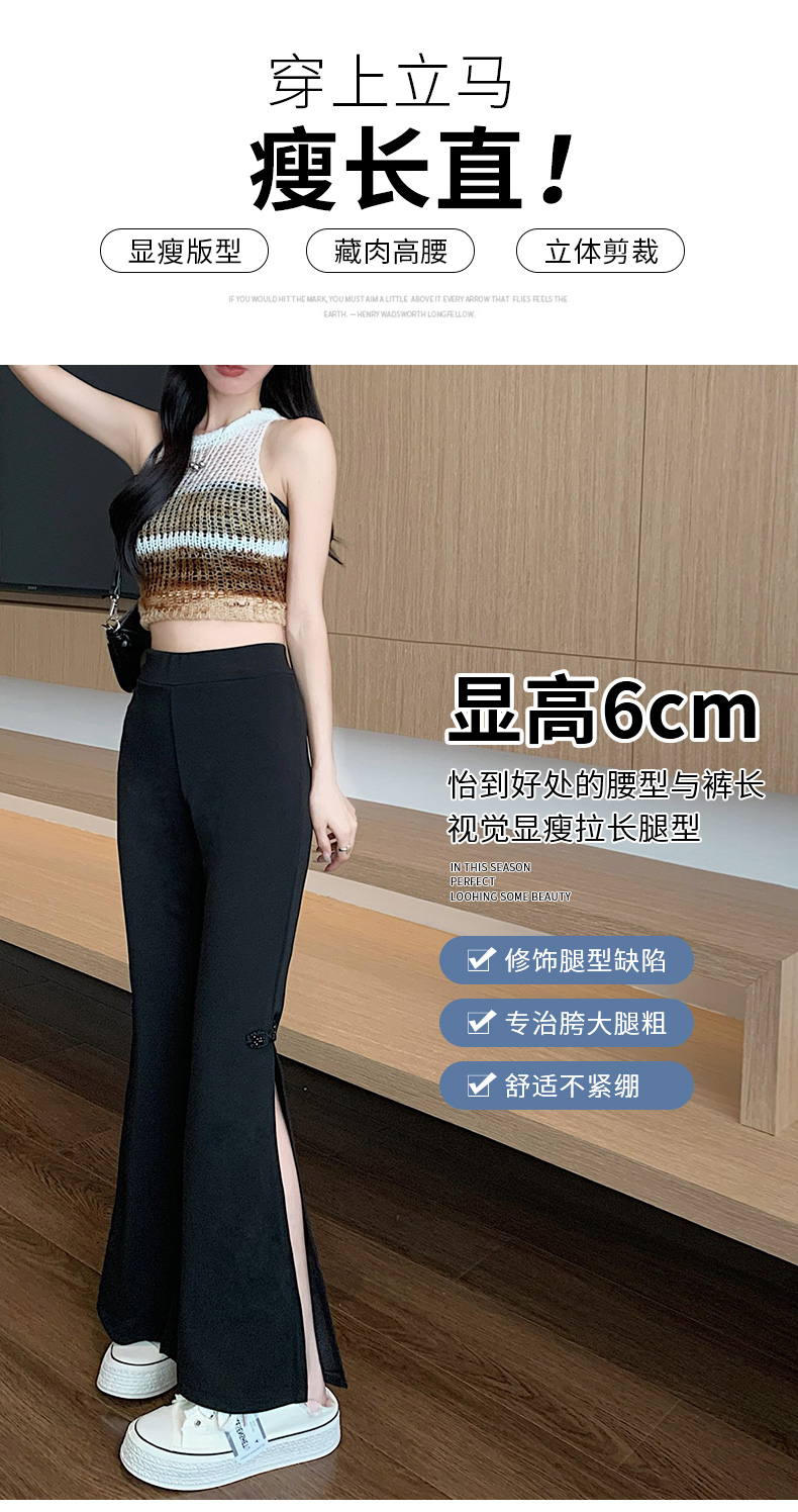 RM9715#春夏侧开叉盘扣喇叭裤女设计感高腰显瘦垂感休闲阔腿裤