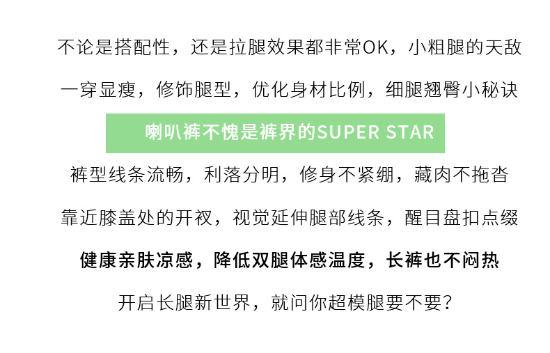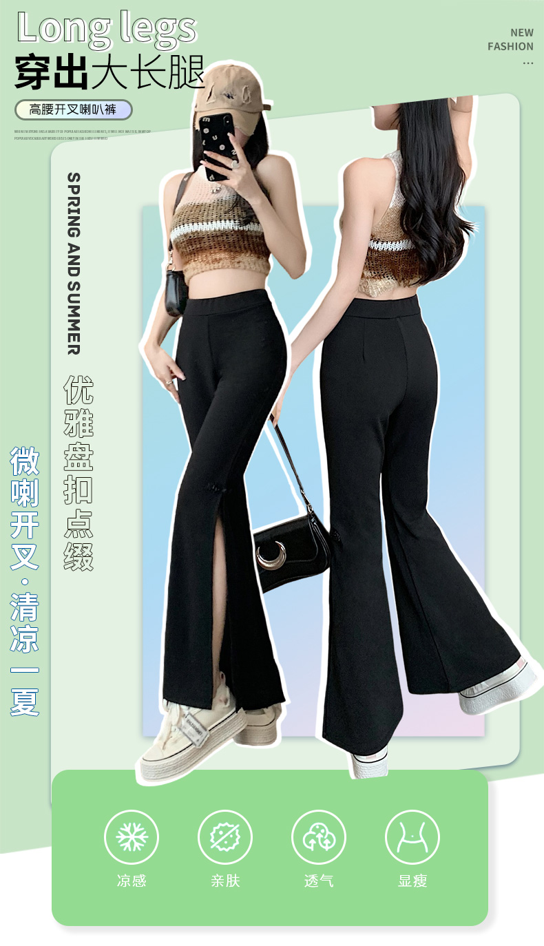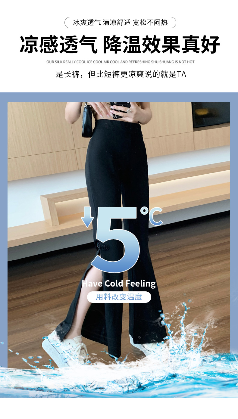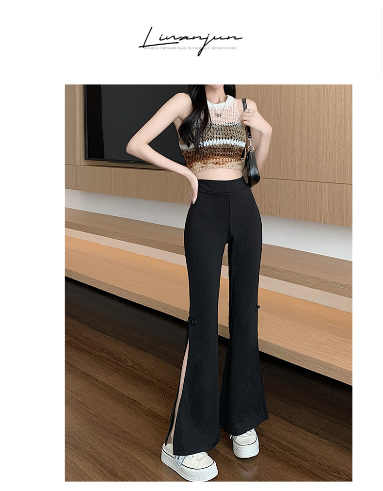 RM9715#春夏侧开叉盘扣喇叭裤女设计感高腰显瘦垂感休闲阔腿裤