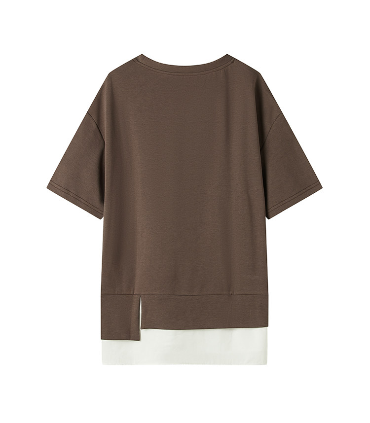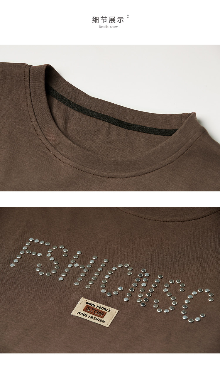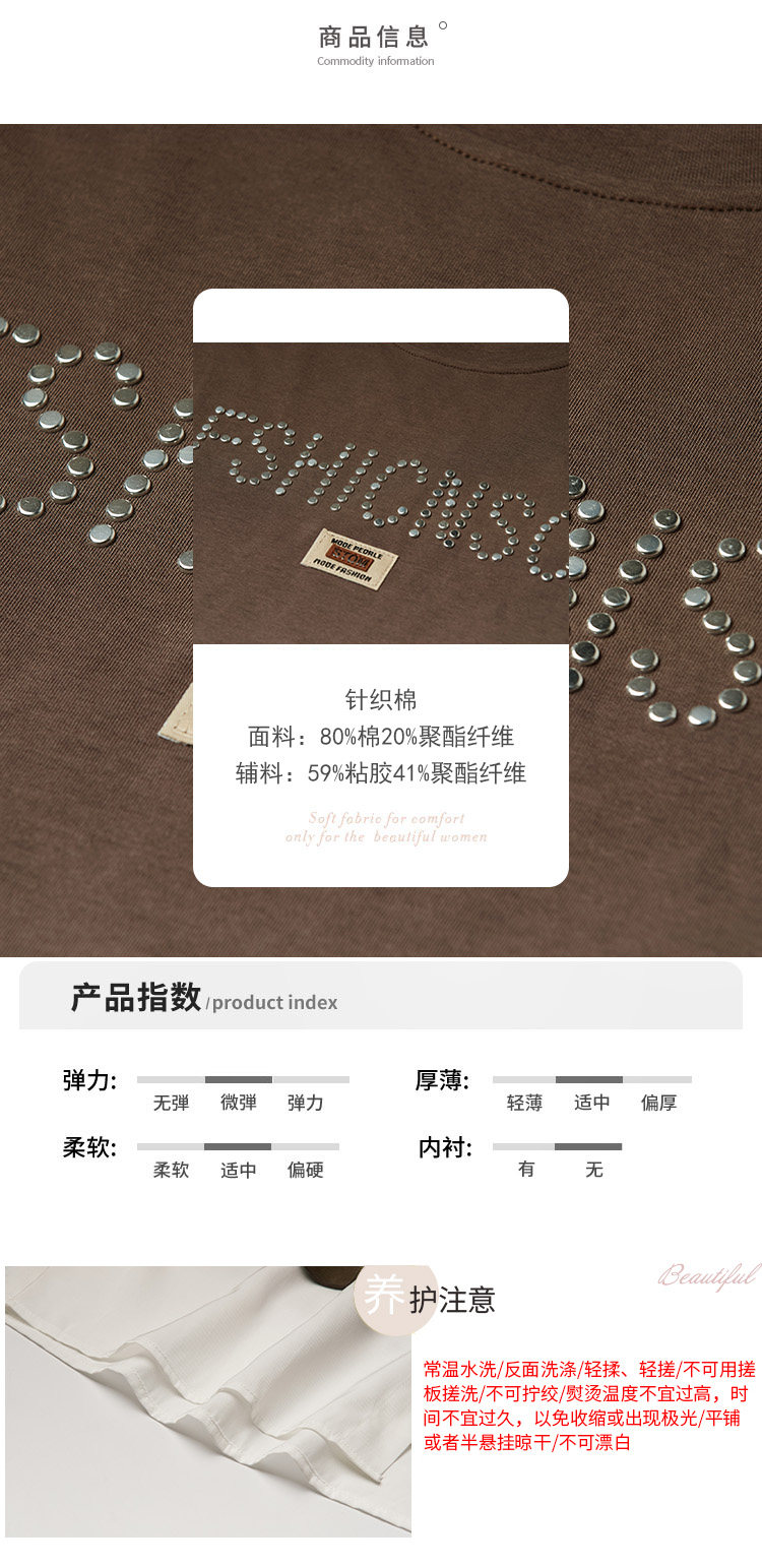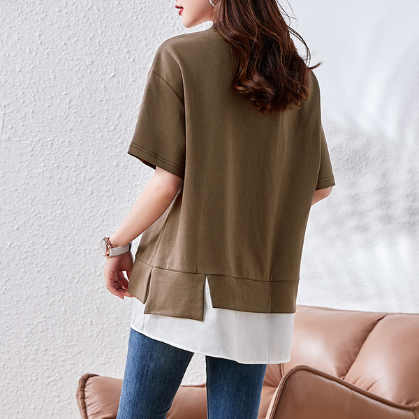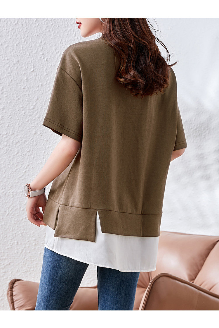RM9819#欧洲站大码新款假两件铆钉字母短袖T恤上衣宽松胖妹妹女装