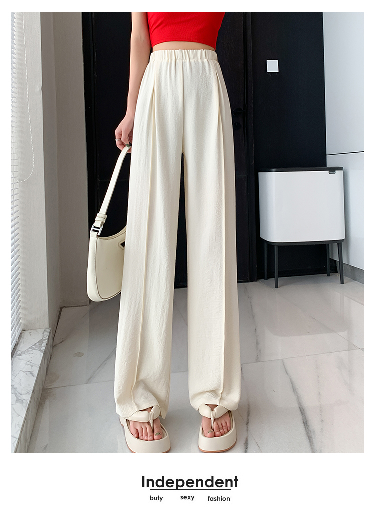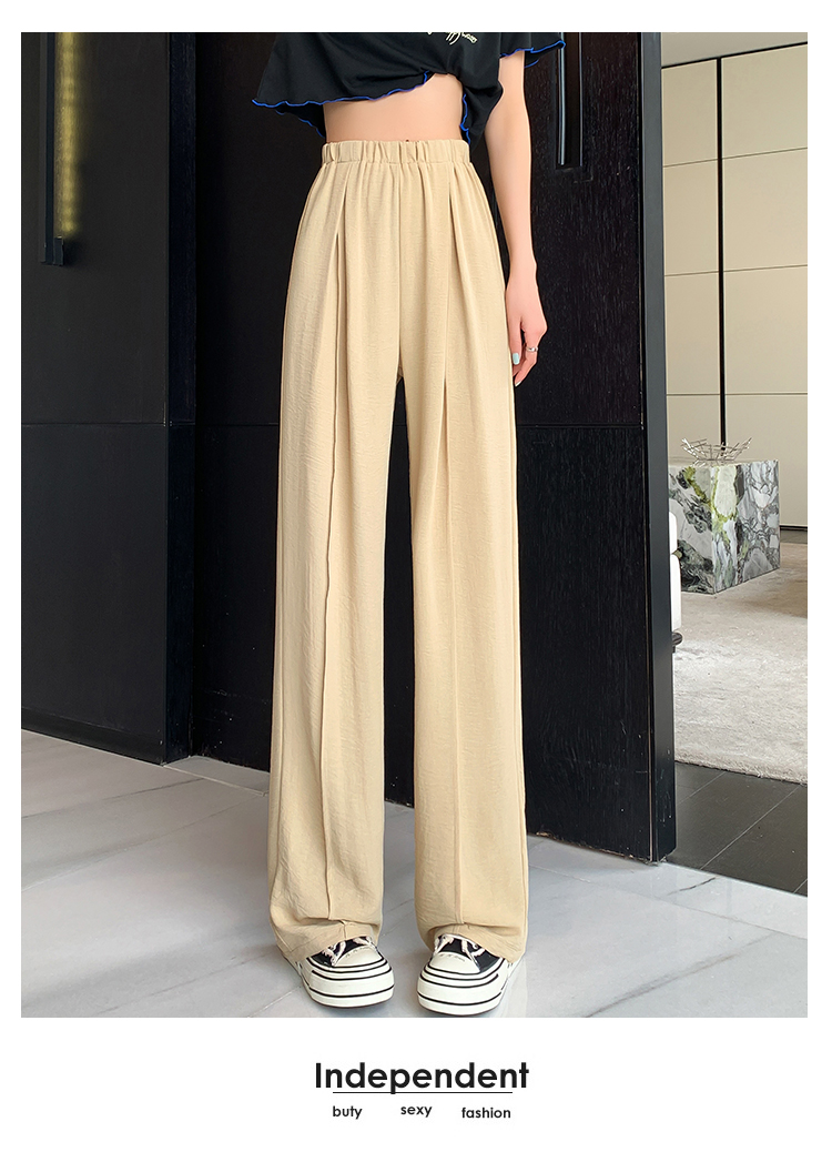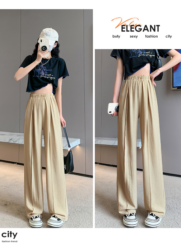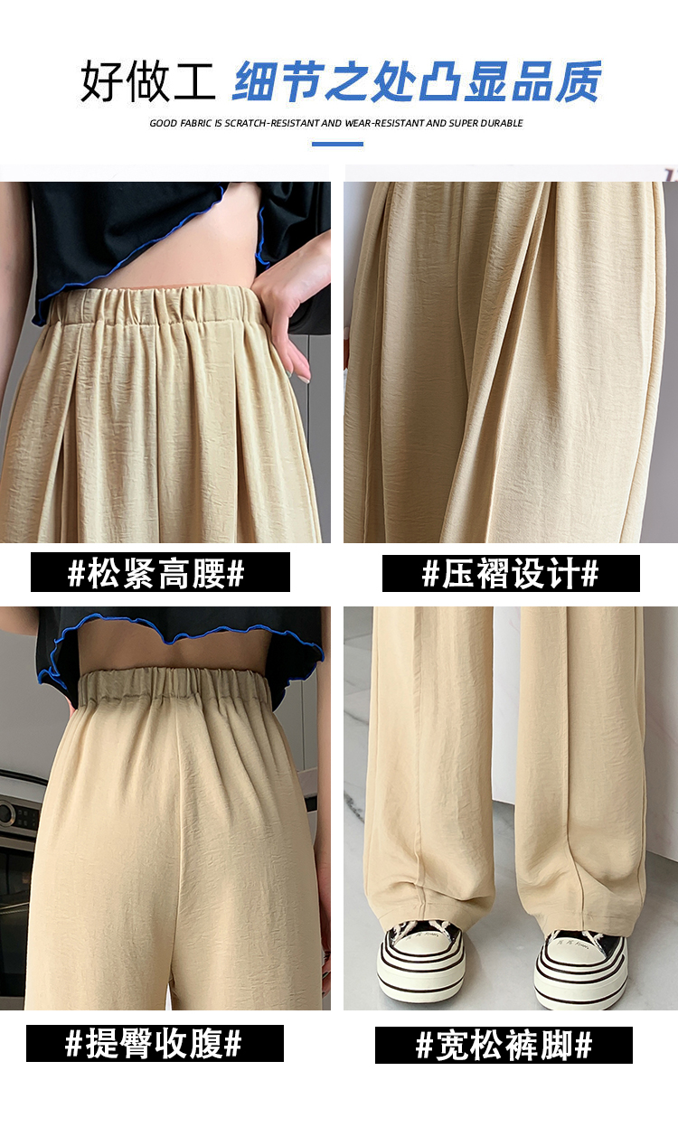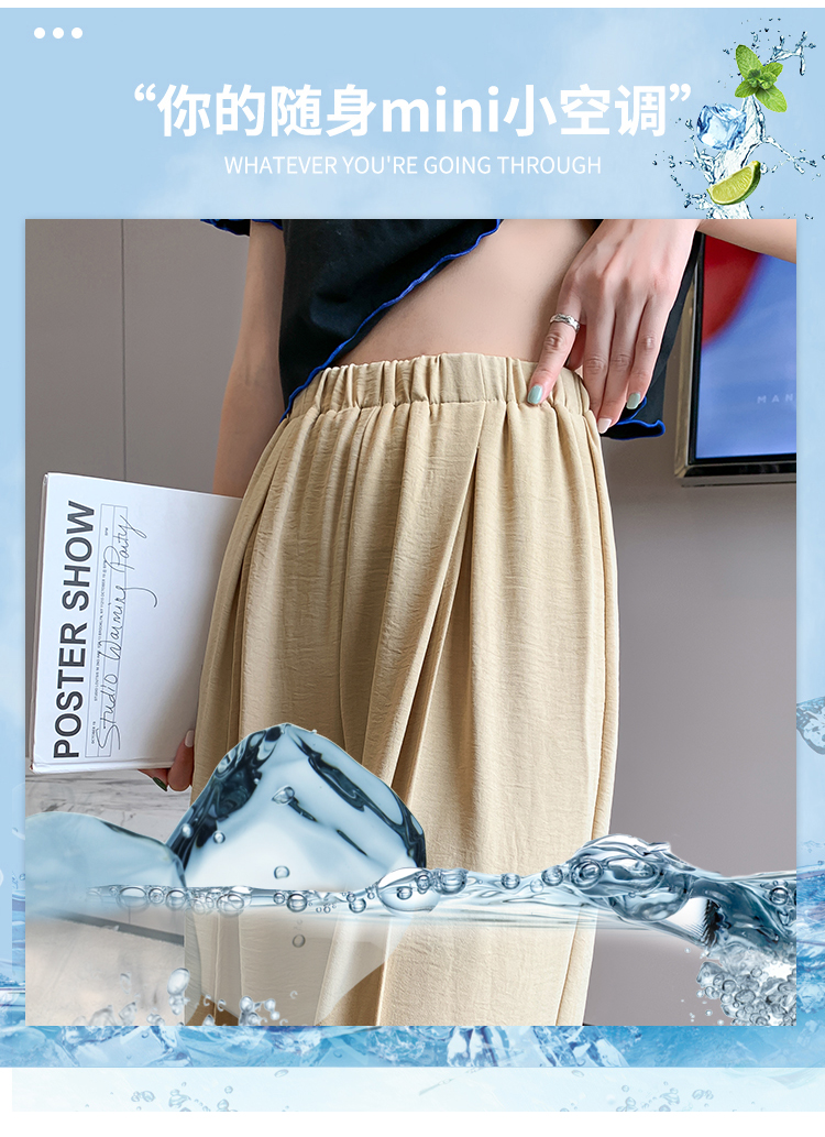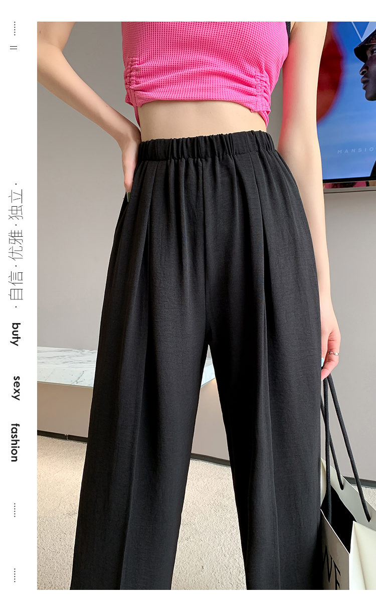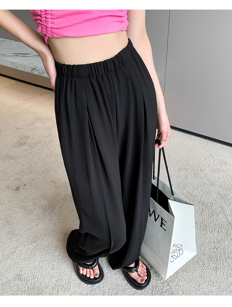 RM9875#夏季新款女时尚松紧高腰天丝皱冰凉垂感休闲直筒阔腿裤