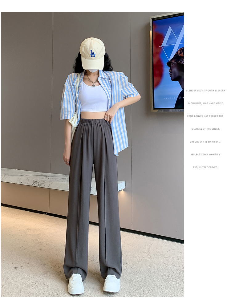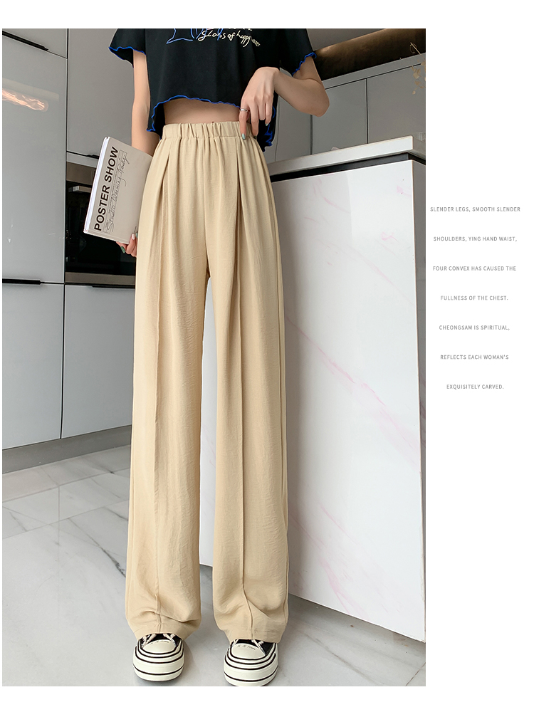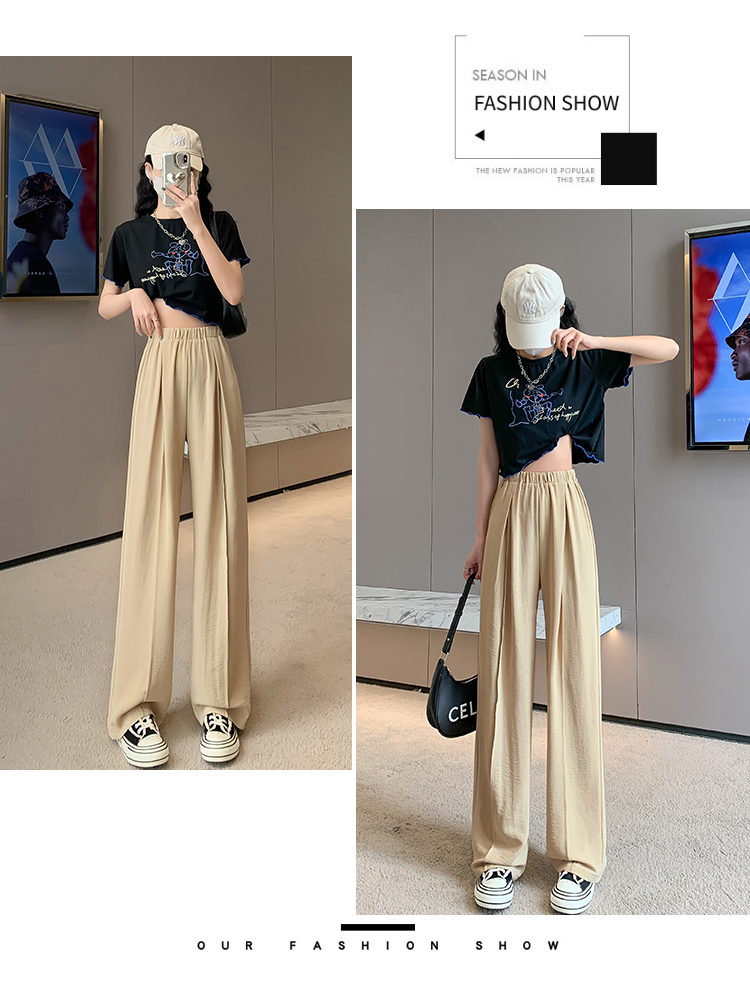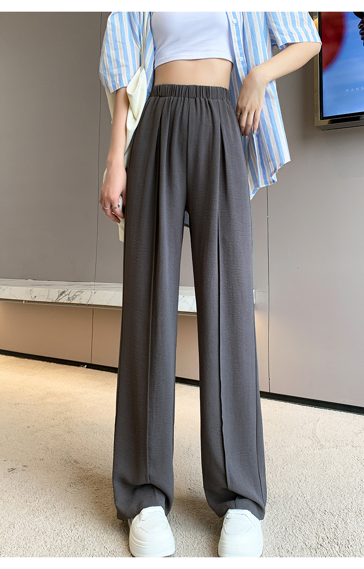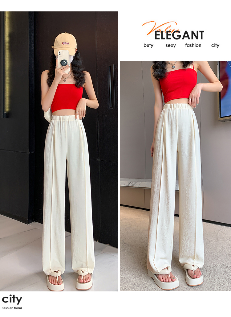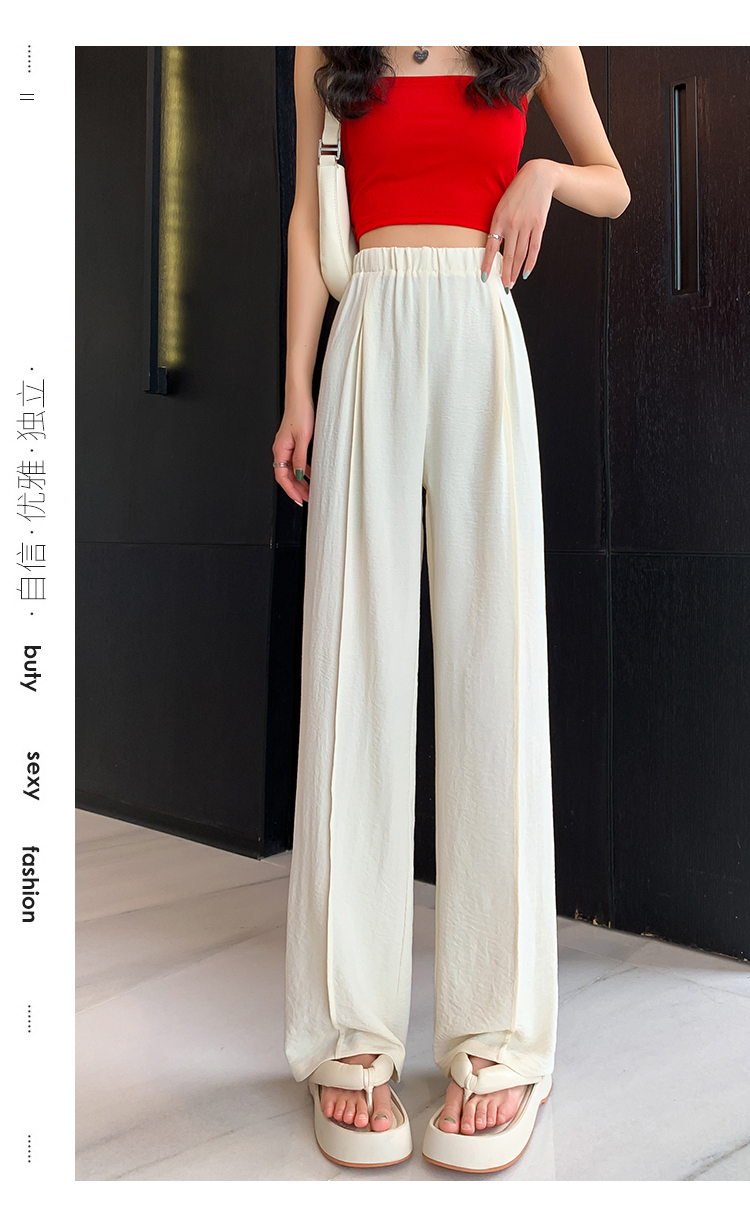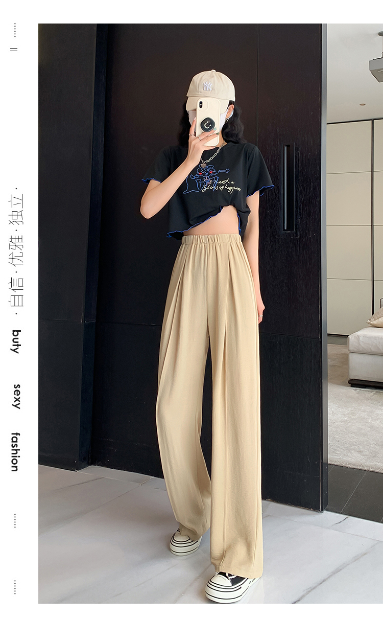 RM9875#夏季新款女时尚松紧高腰天丝皱冰凉垂感休闲直筒阔腿裤