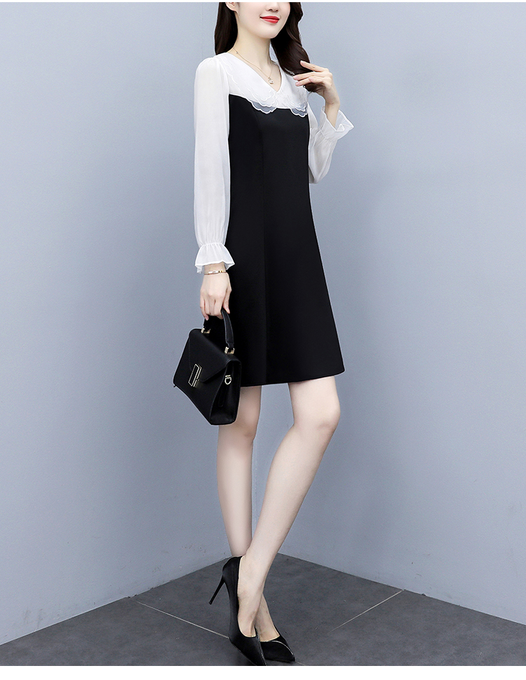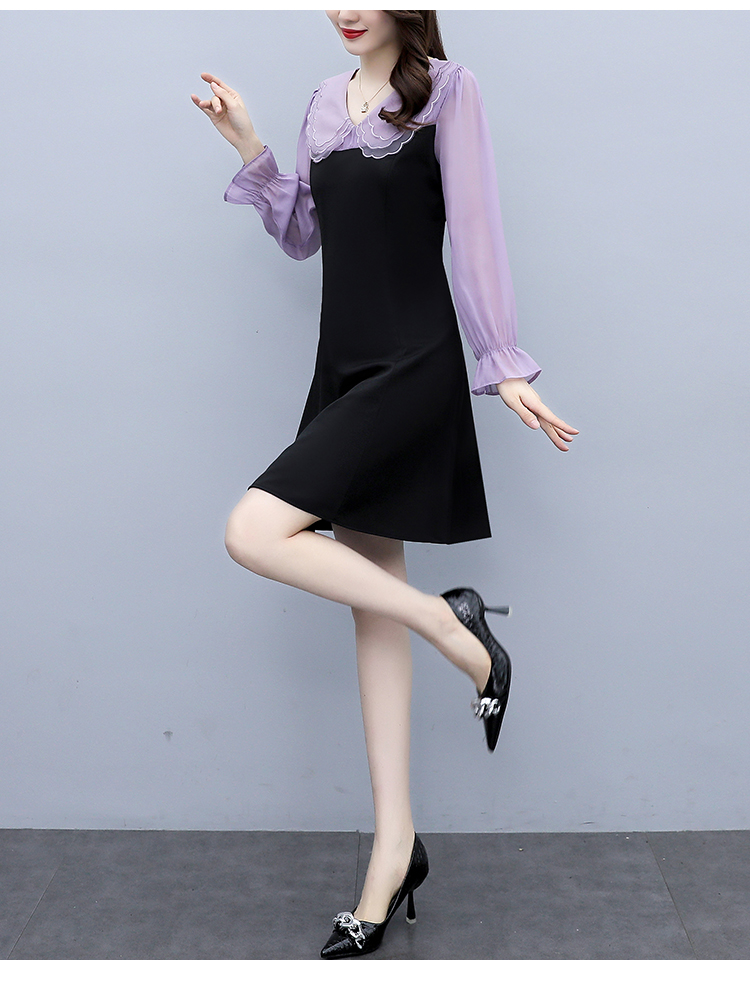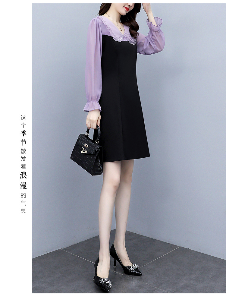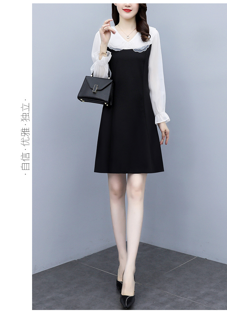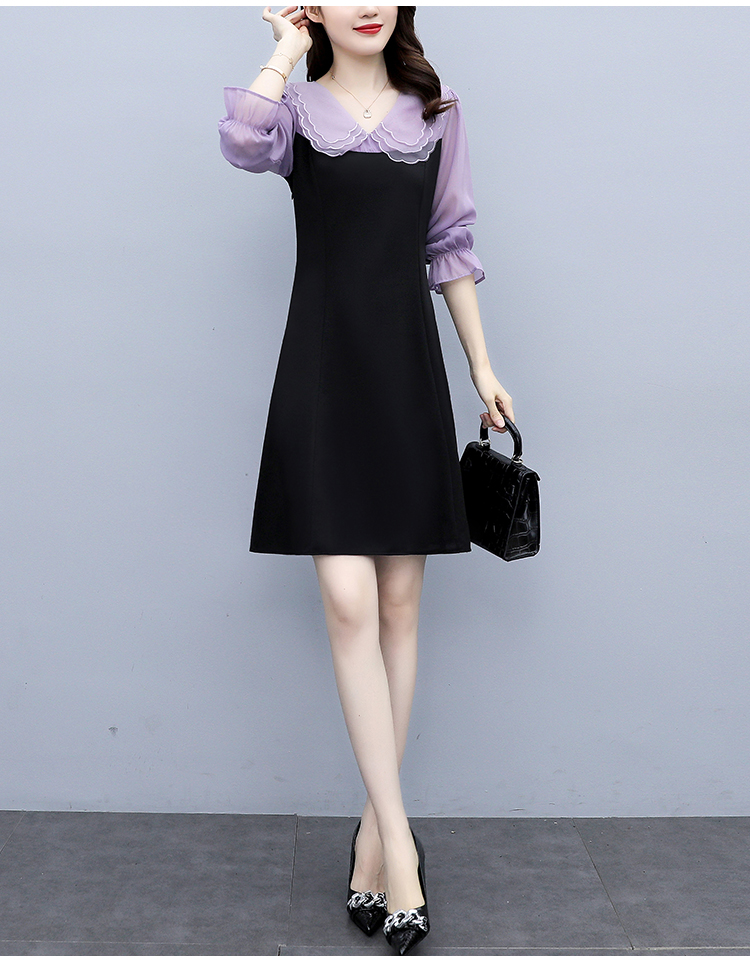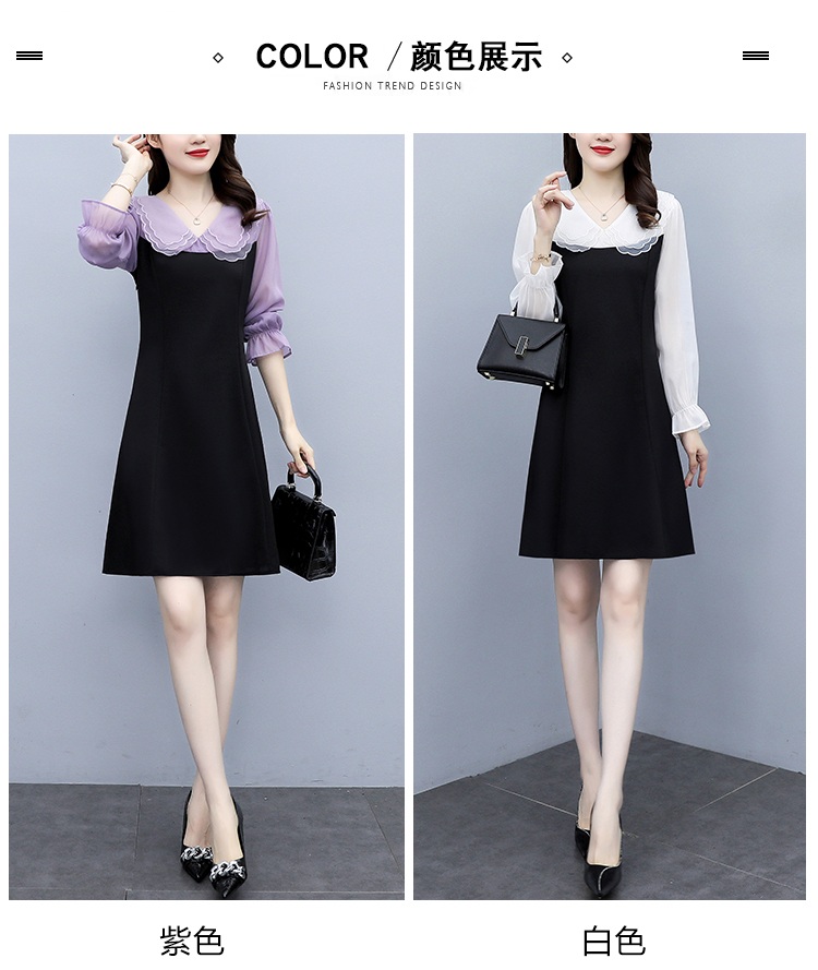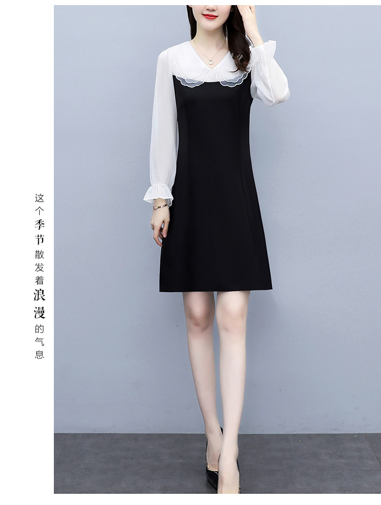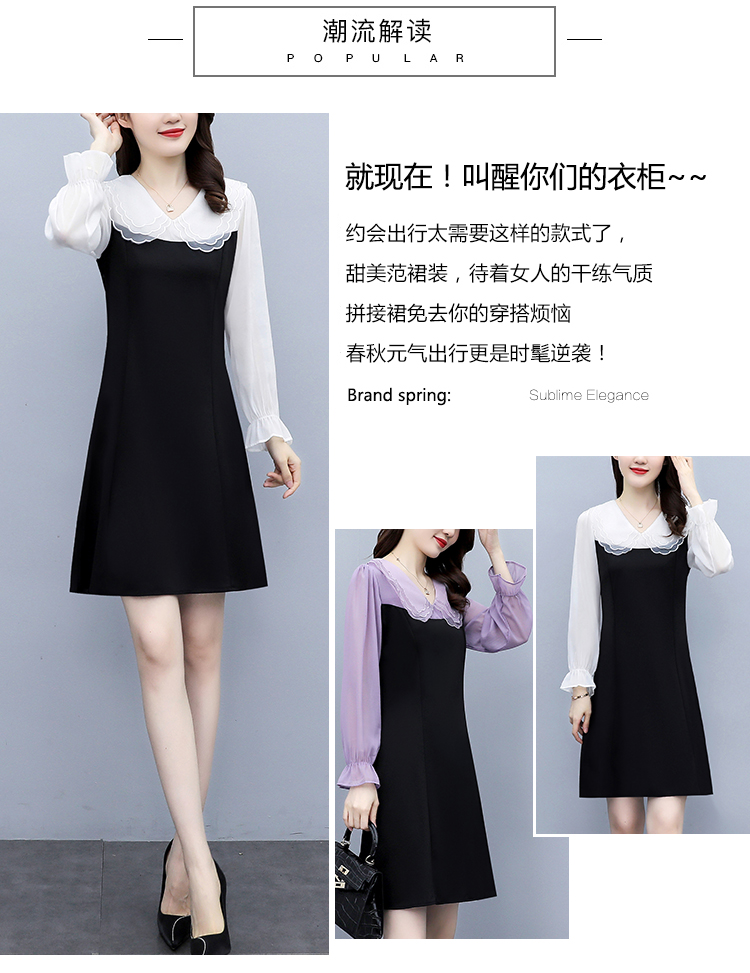 RM9903#大码女装秋装新款法式复古连衣裙女气质娃娃领显瘦小黑裙子