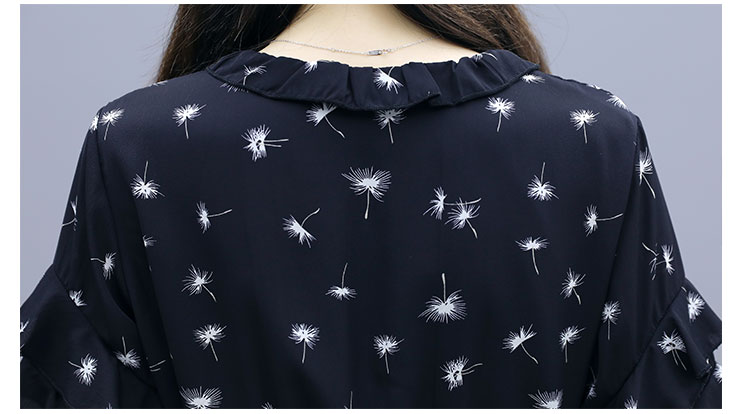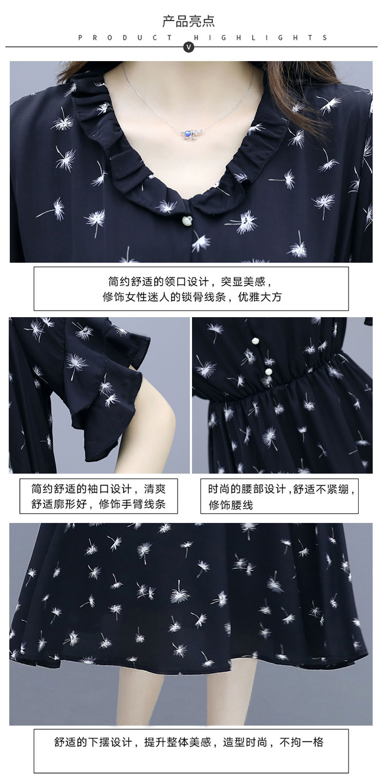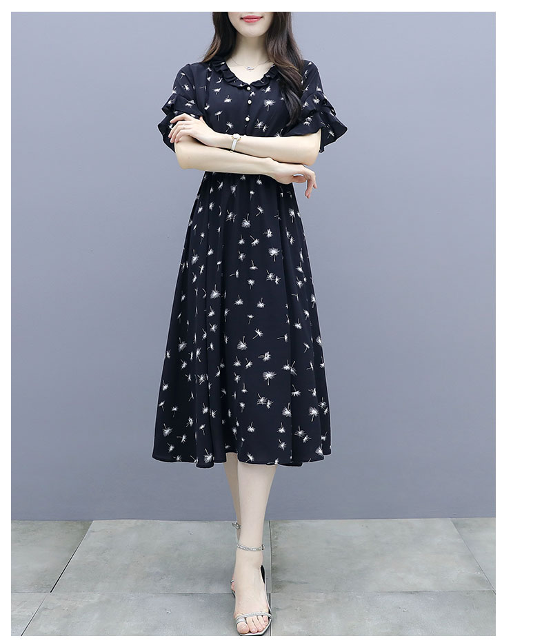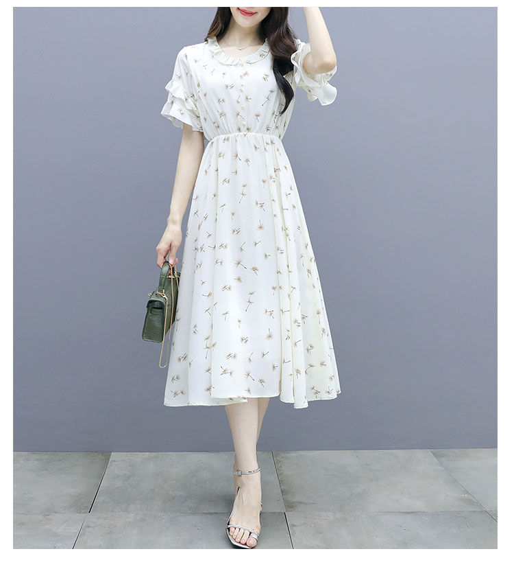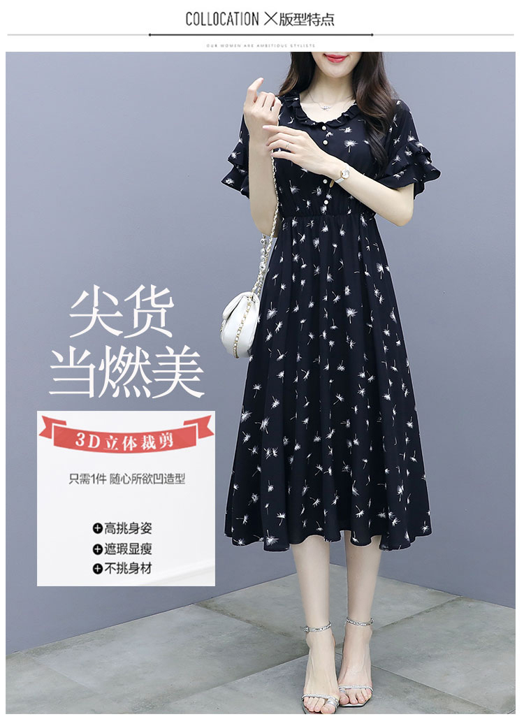 RM9910#碎花连衣裙女中长款2022年夏季复古收腰长裙短袖雪纺裙子气质