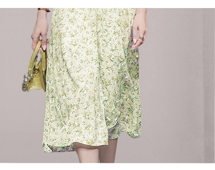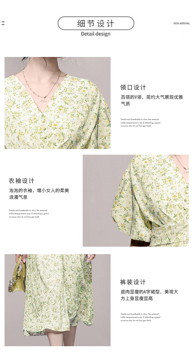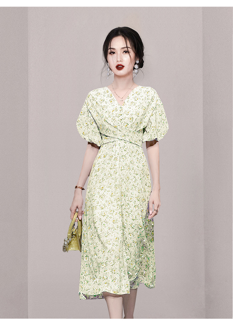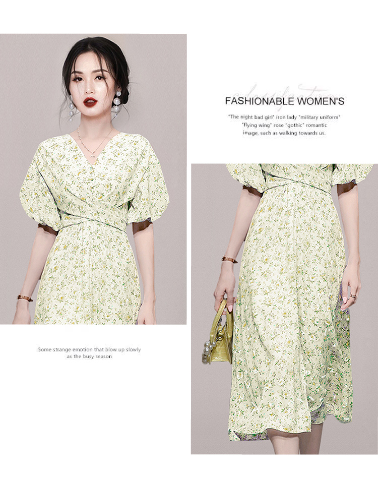 RM9915#夏季女装2023新款气质法式短袖收腰显瘦碎花连衣裙茶歇裙长裙