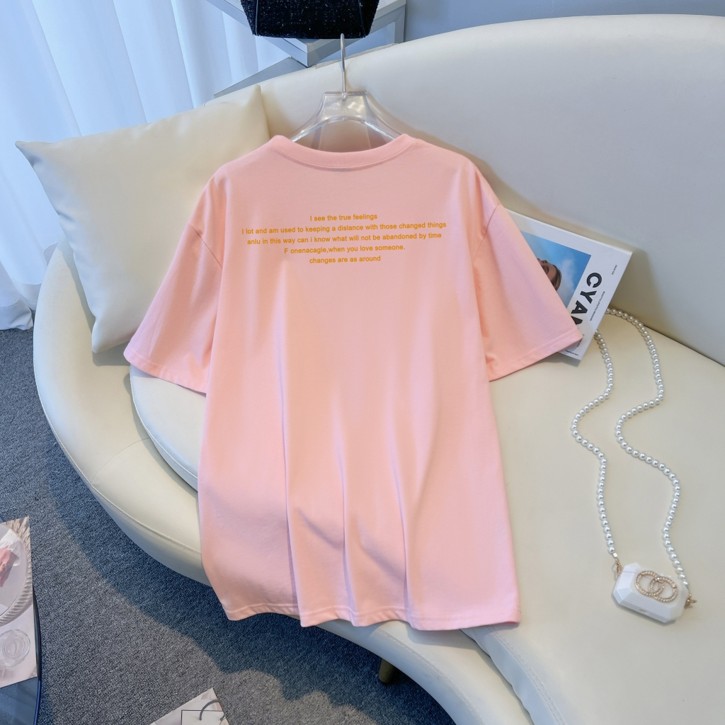 RM10536#100%棉精梳纯棉 印花夏装短袖T恤女宽松韩版