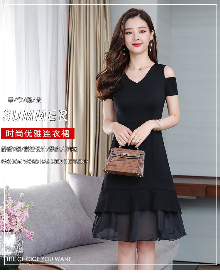 RM10575#春夏新款时尚韩版V领气质A字连衣裙女装小清新休闲显瘦中