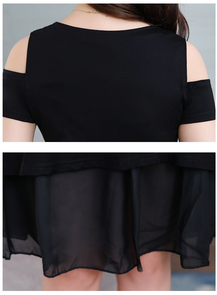 PF23435# 原版面料 设计感露肩灰色T恤女夏季宽松休闲简约斜肩黑色上...