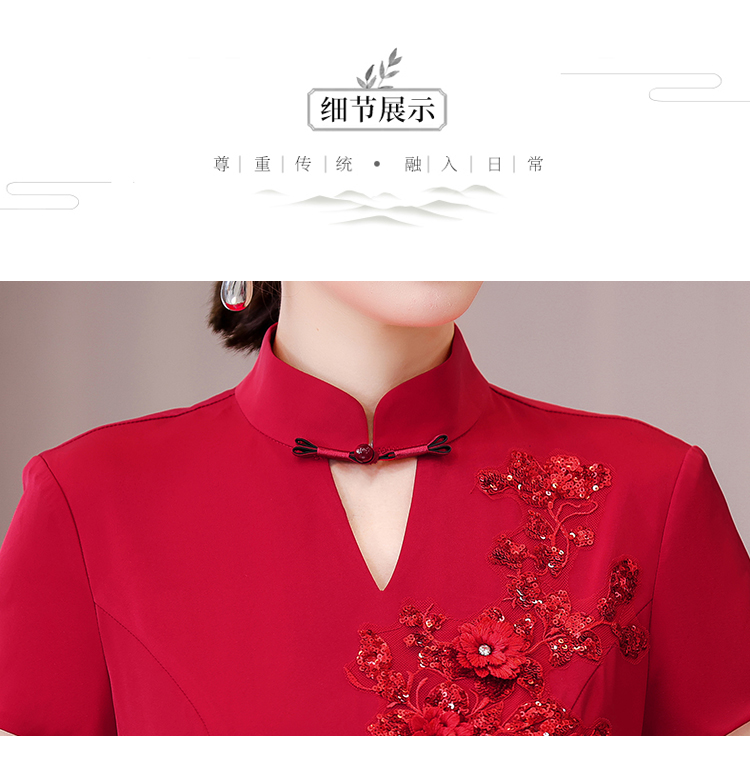 RM10623#春夏新款红色长款连衣裙喜婆婆妈妈婚宴装减龄长裙晚礼服
