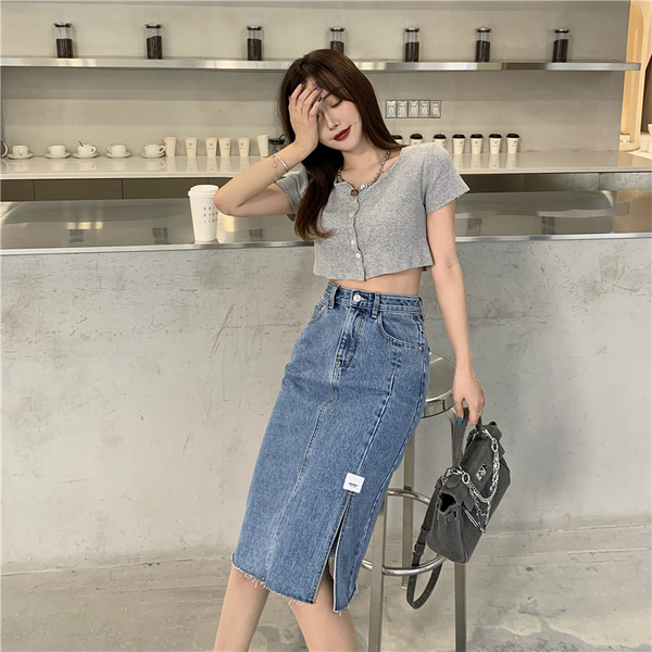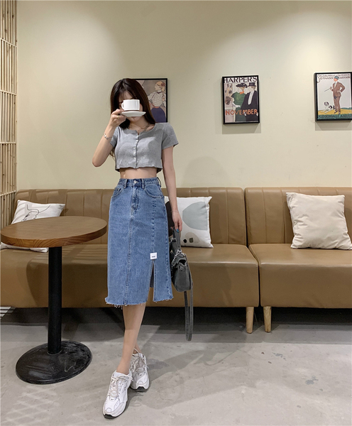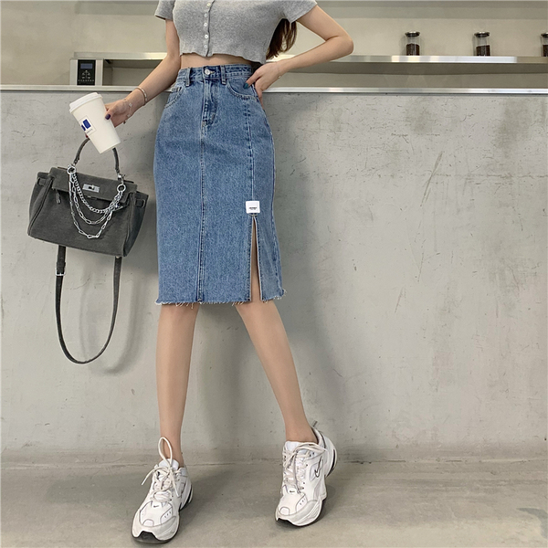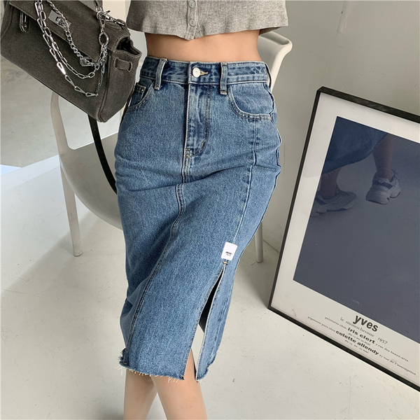 RM10716#韩版毛边开叉半身裙显高搭配炸街轻熟A字裙