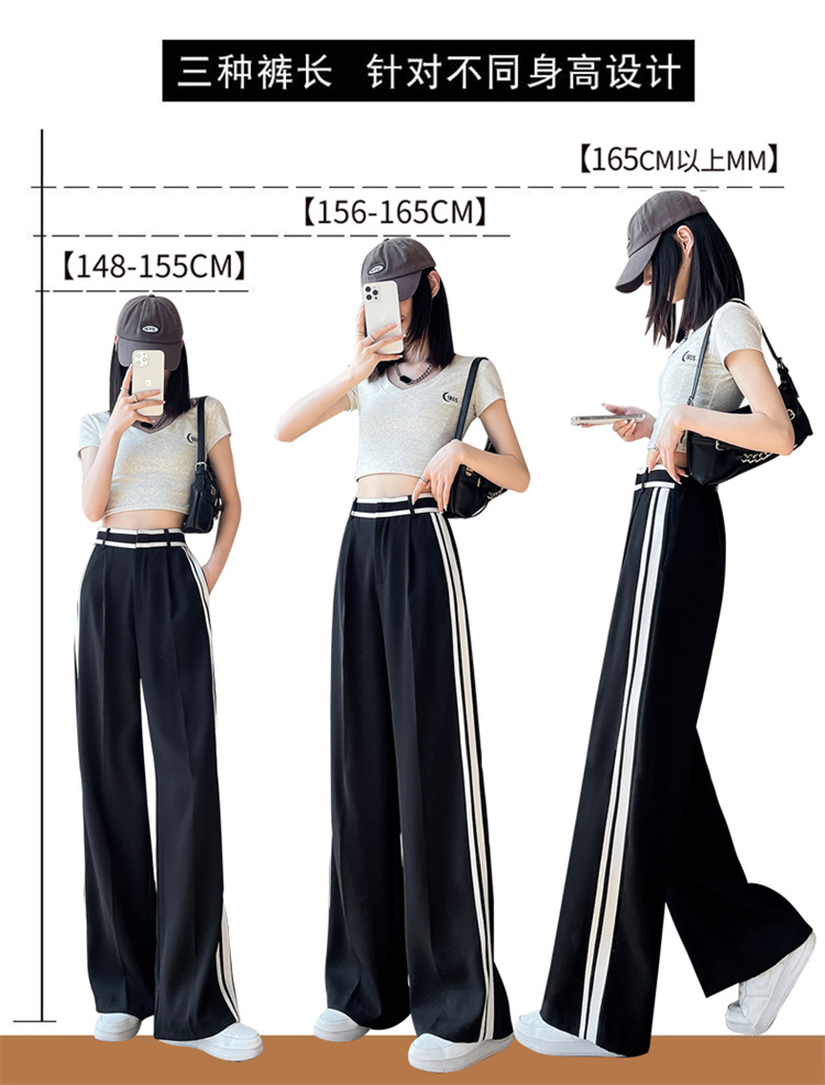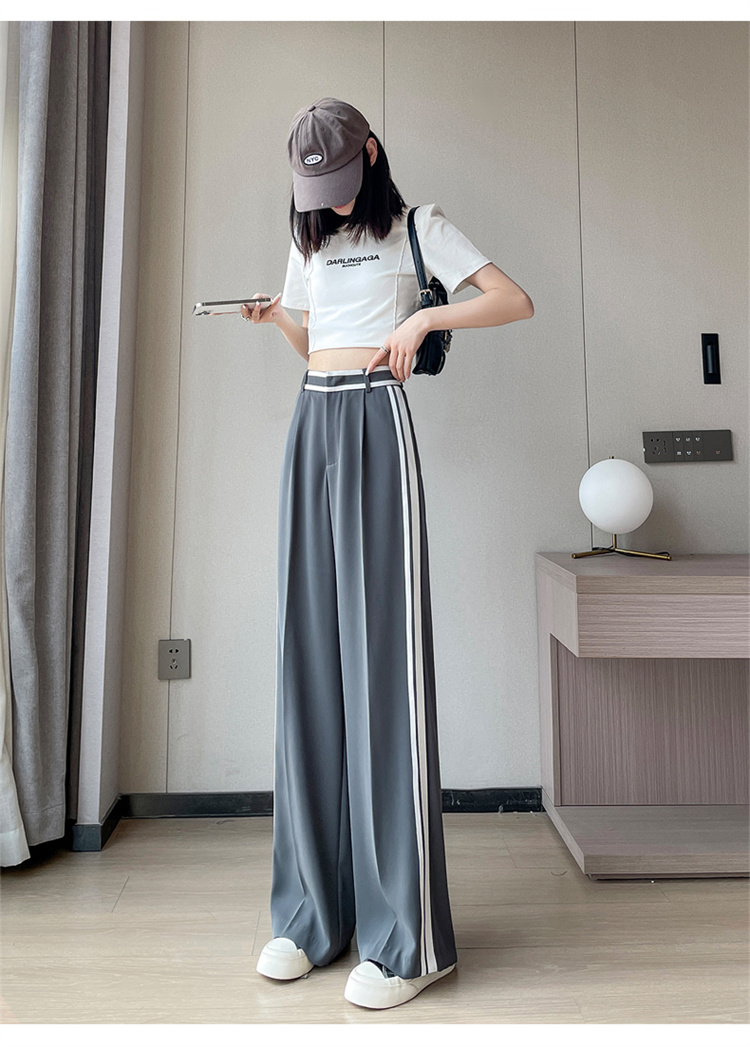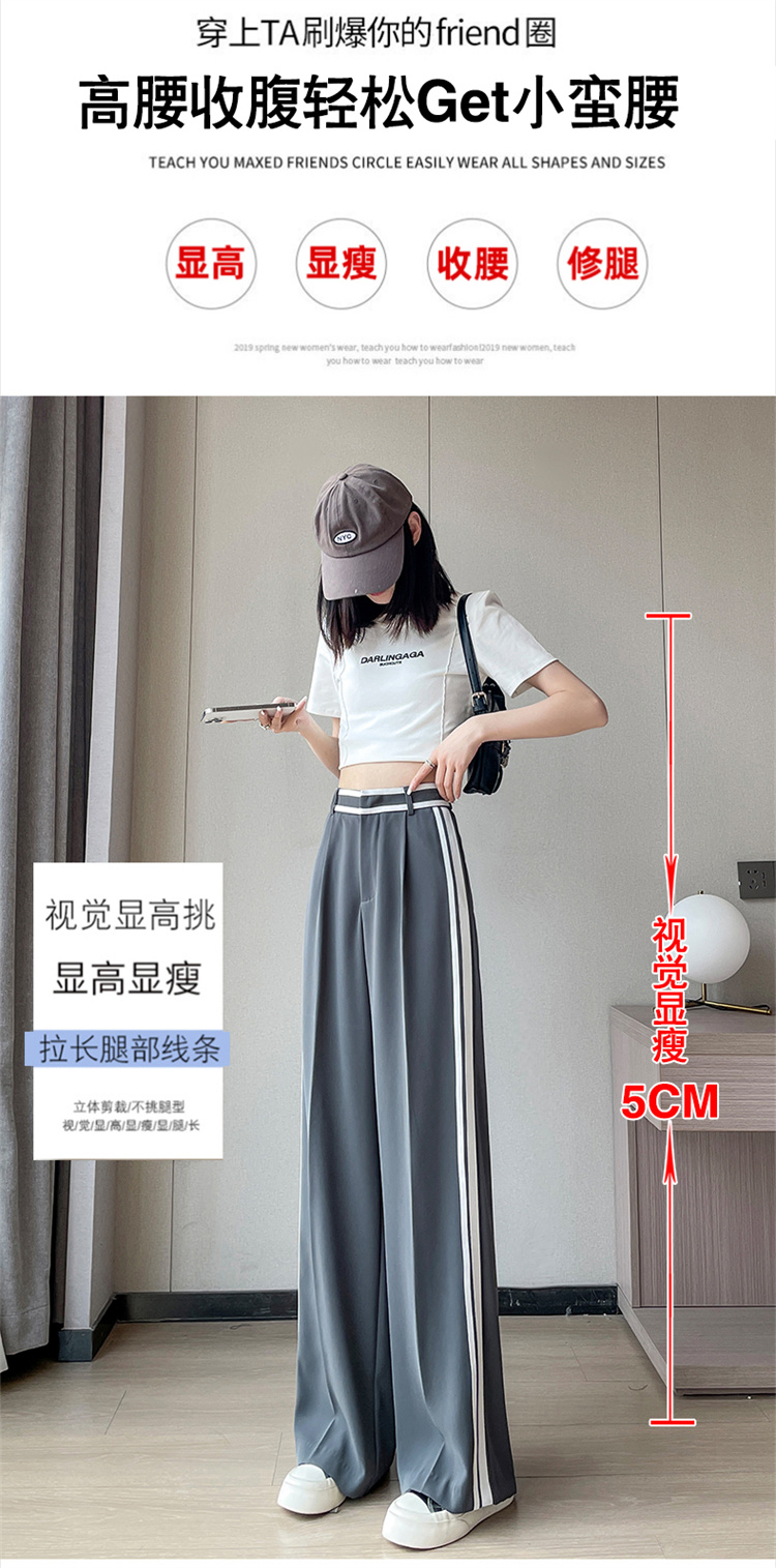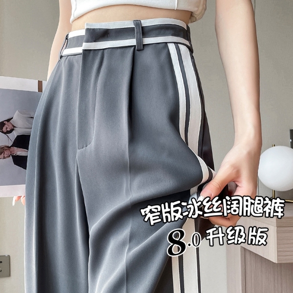 RM10718#夏季冰丝西装运动裤高腰窄版直筒阔腿裤薄款拖地裤女