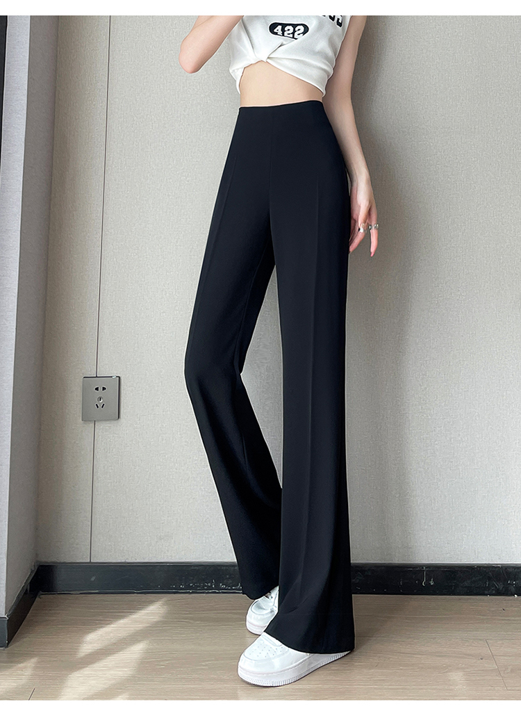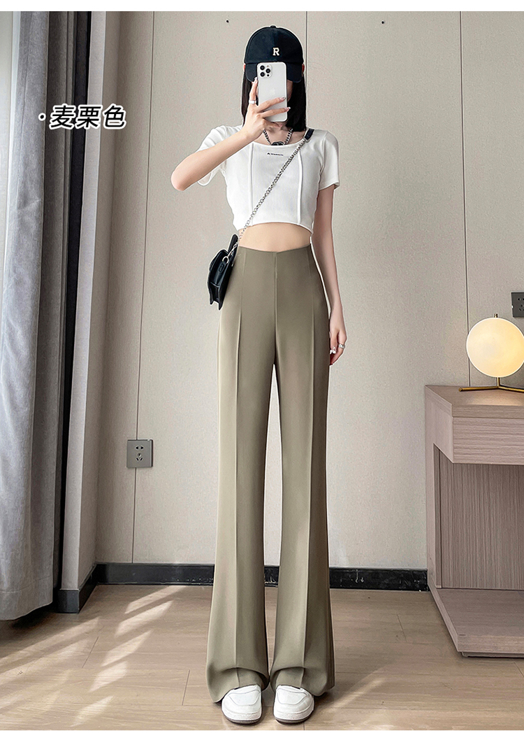 RM10719#夏季冰丝西装裤侧拉链直筒薄款微喇大码高腰窄版阔腿裤女