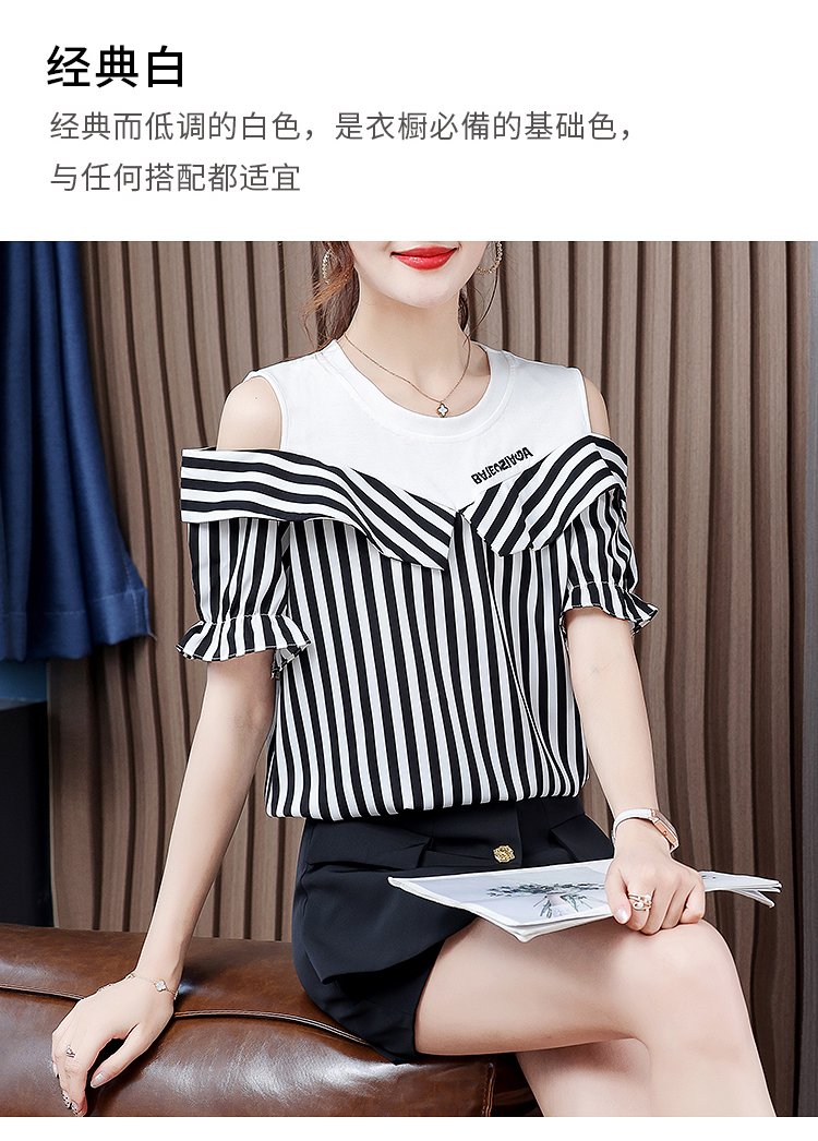RM10814#夏露肩短袖雪纺衬衫女士2023夏新款宽松T恤小衫减龄洋气上衣