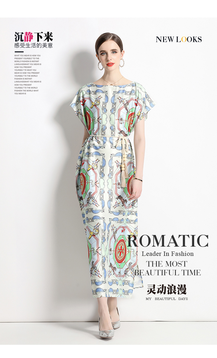 RM11417#欧美时尚百搭一字领宽松系带连衣裙配腰带