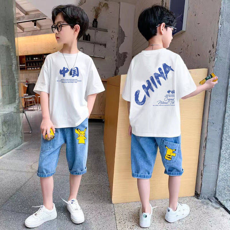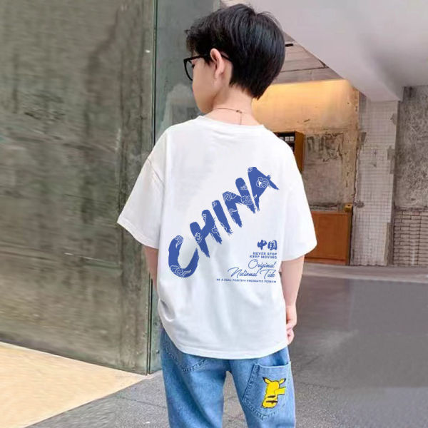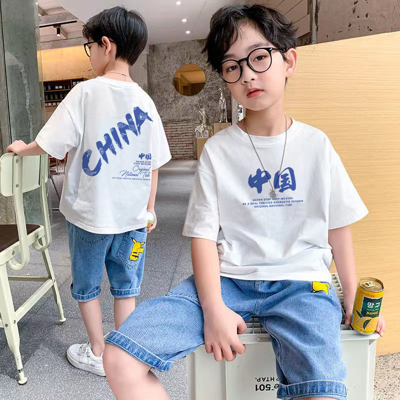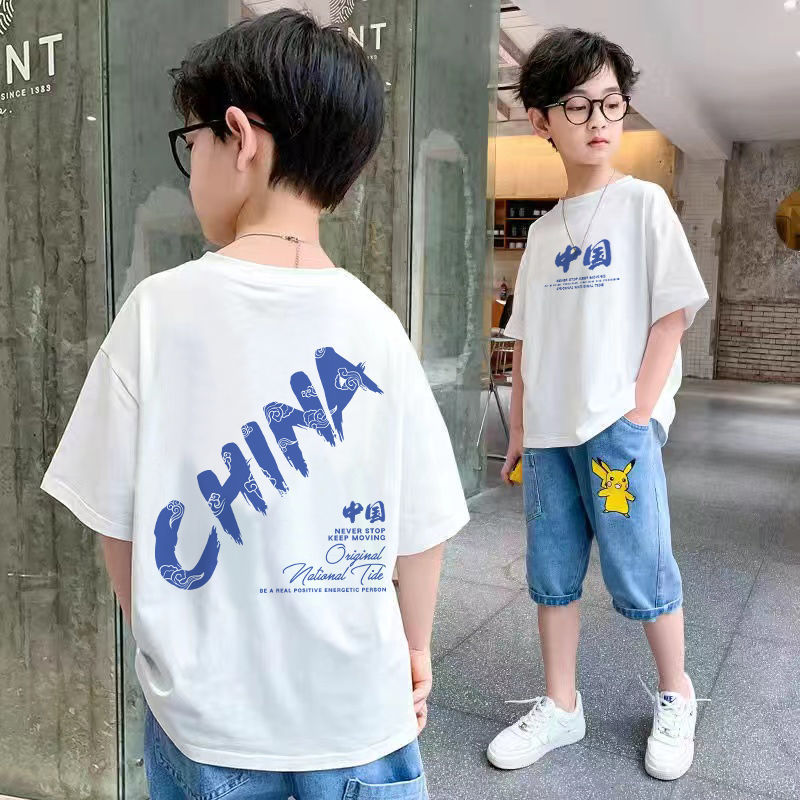 RM25531#纯棉儿童短袖t恤夏新款衣服中大男童装帅气白上衣
