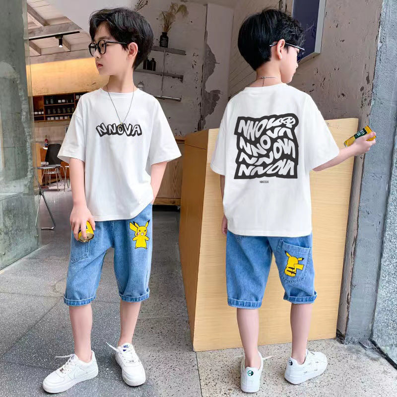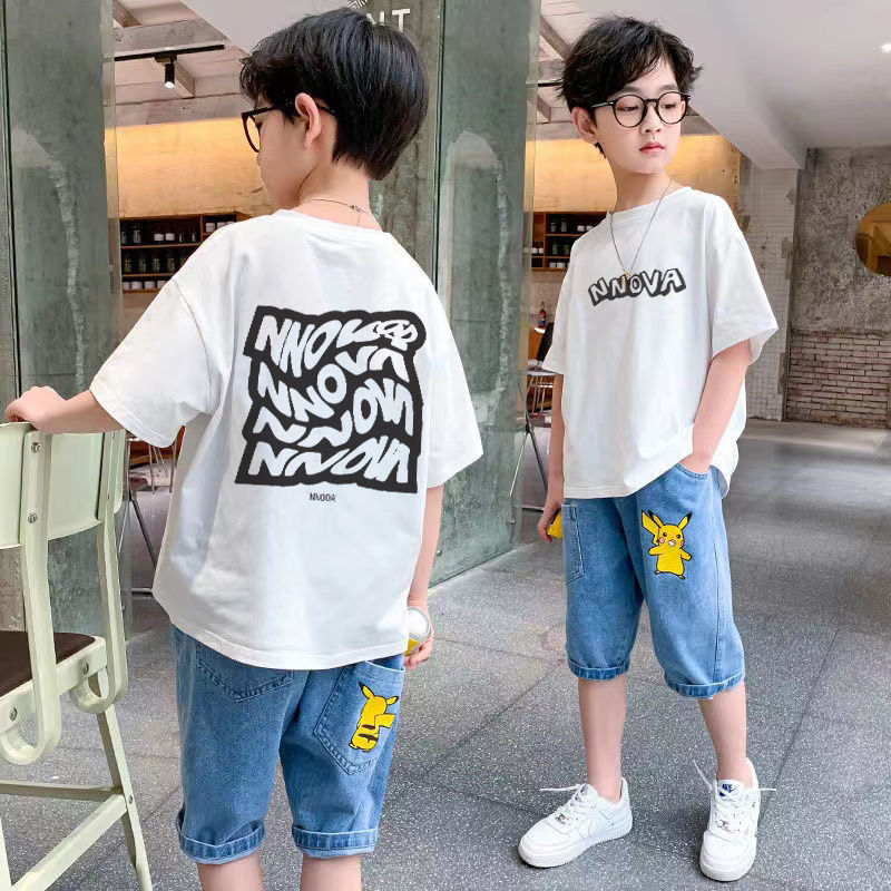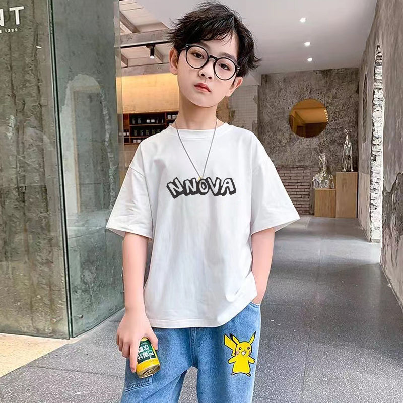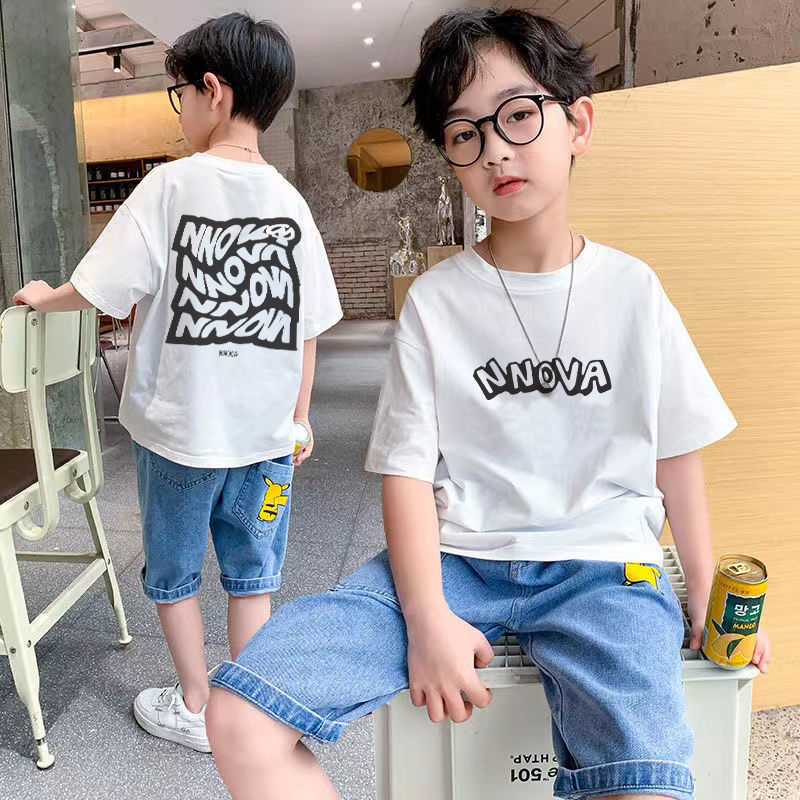 RM25533#纯棉儿童短袖t恤夏新款衣服中大男童装帅气白上衣