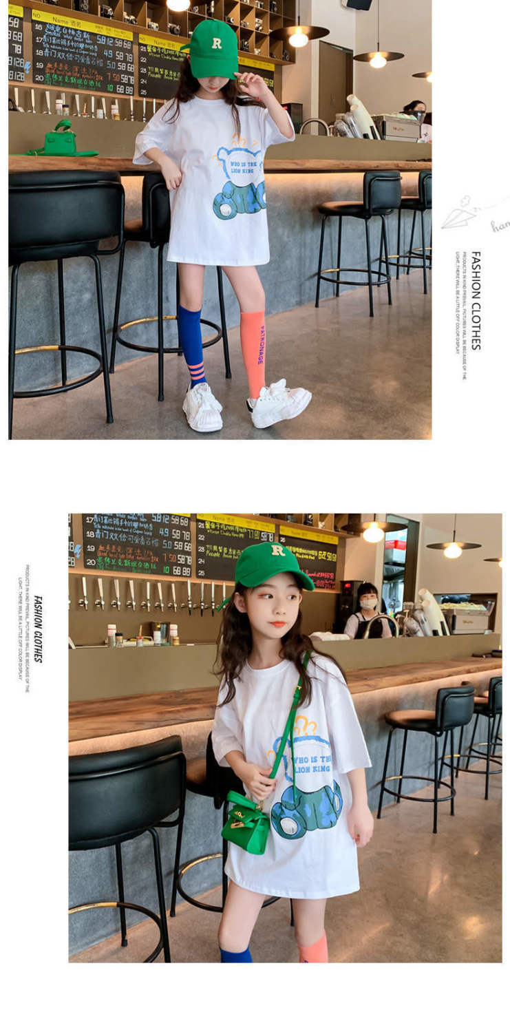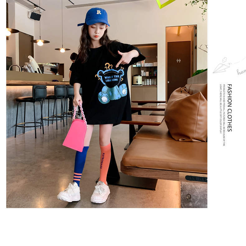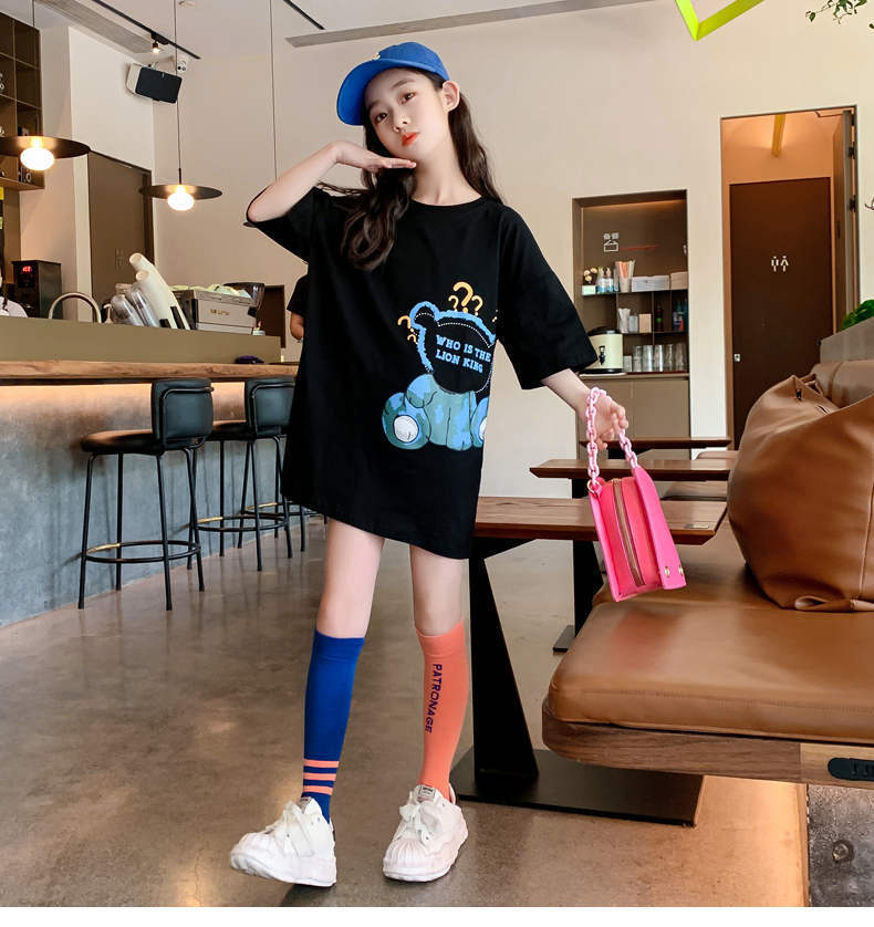 RM25538#26支100%棉女童短袖中大童宽松中长款T恤2023洋气时尚t恤裙