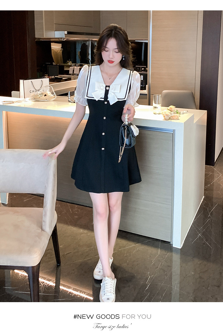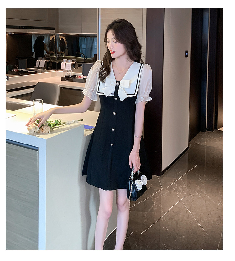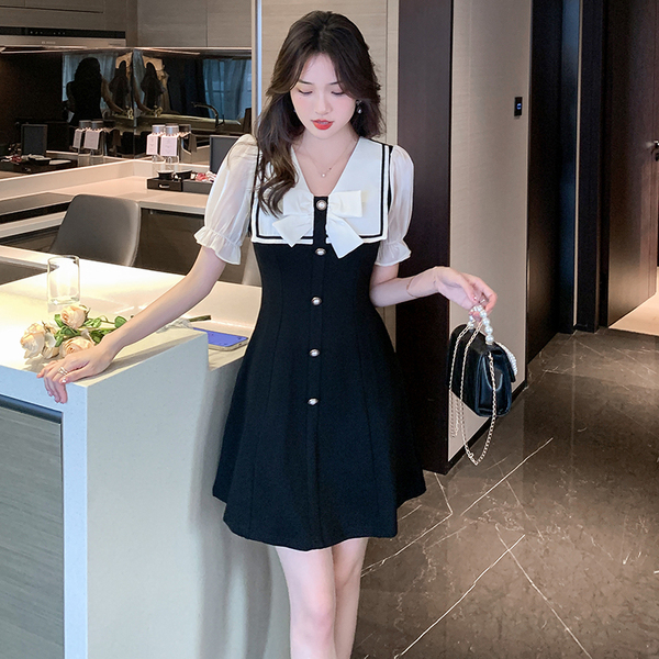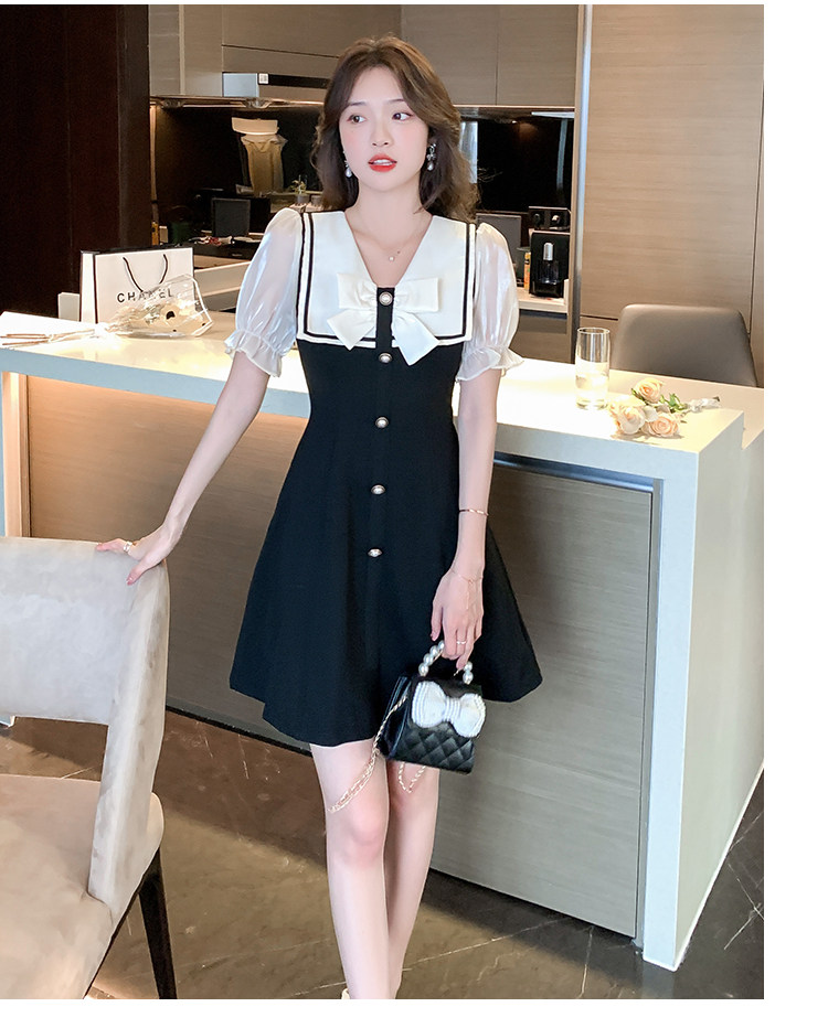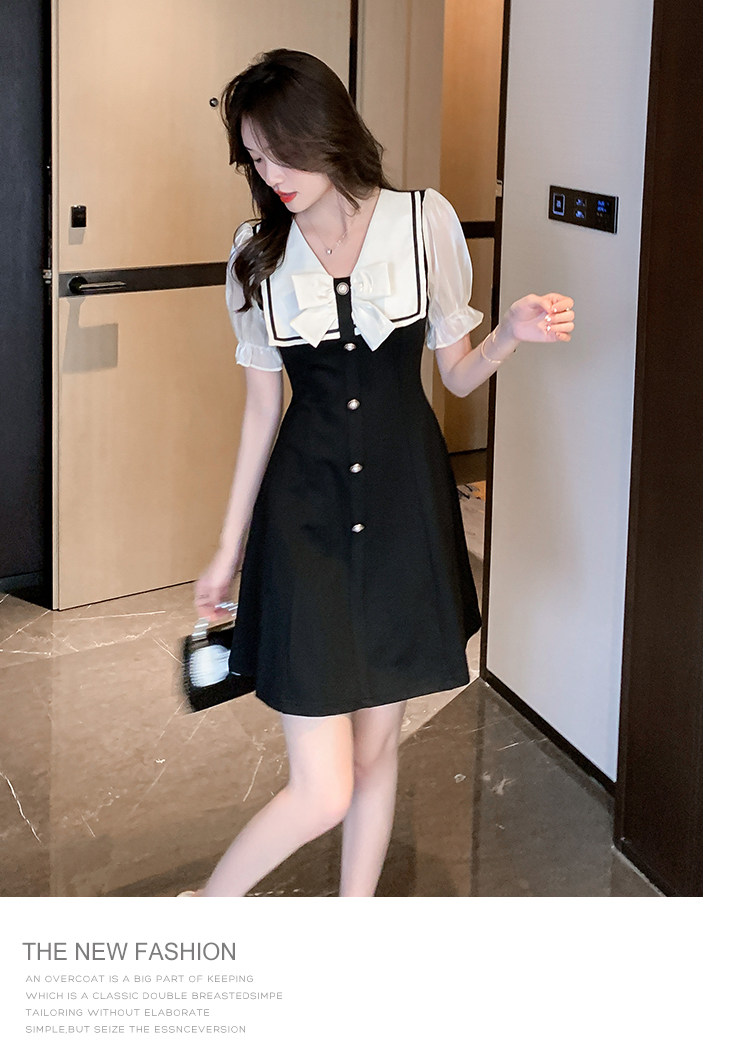 RM11634#夏季新款撞色蝴蝶结气质显瘦连衣裙