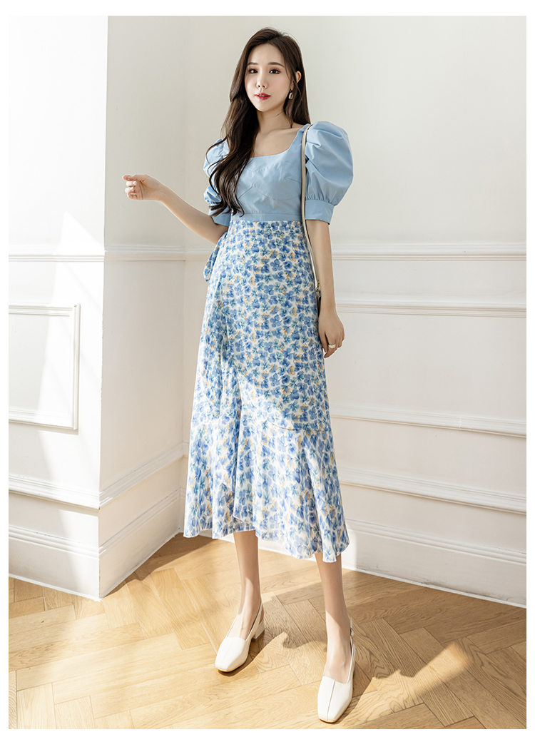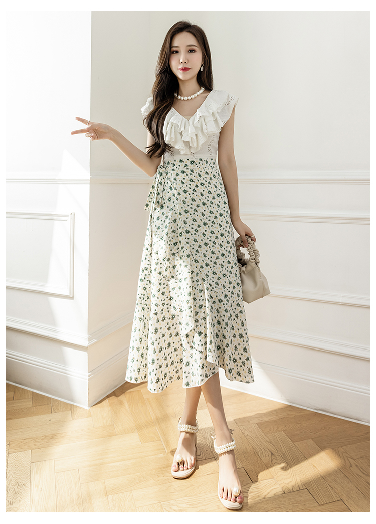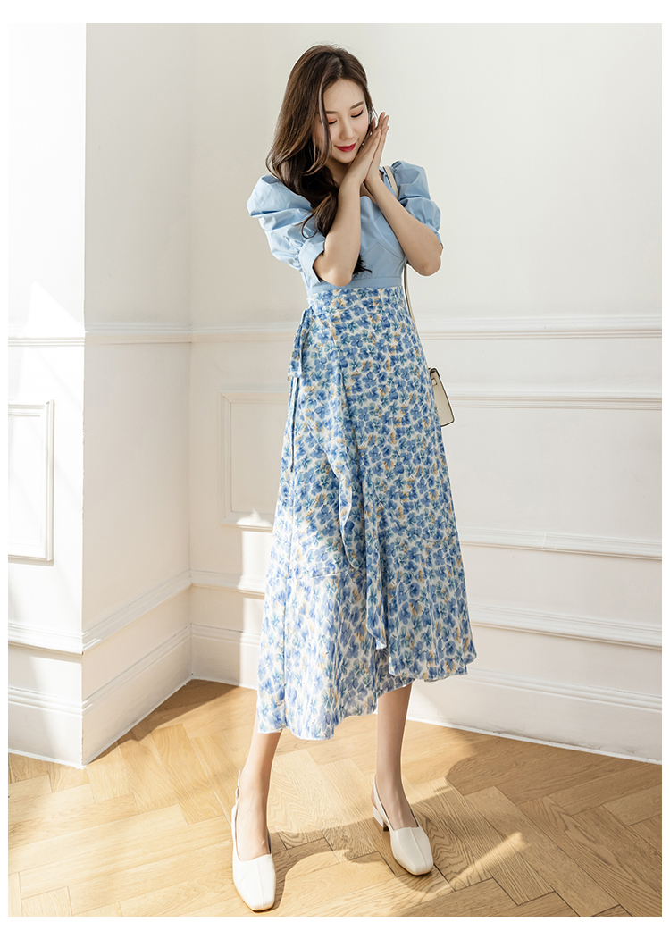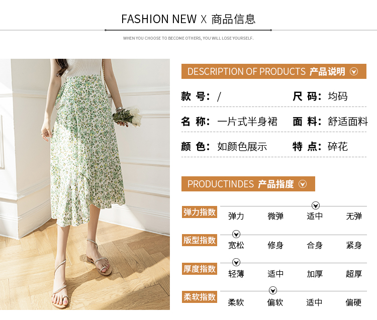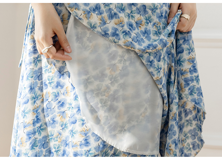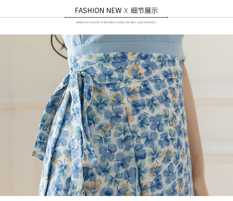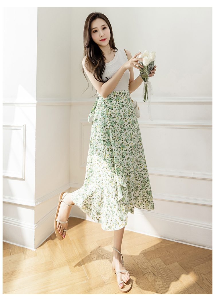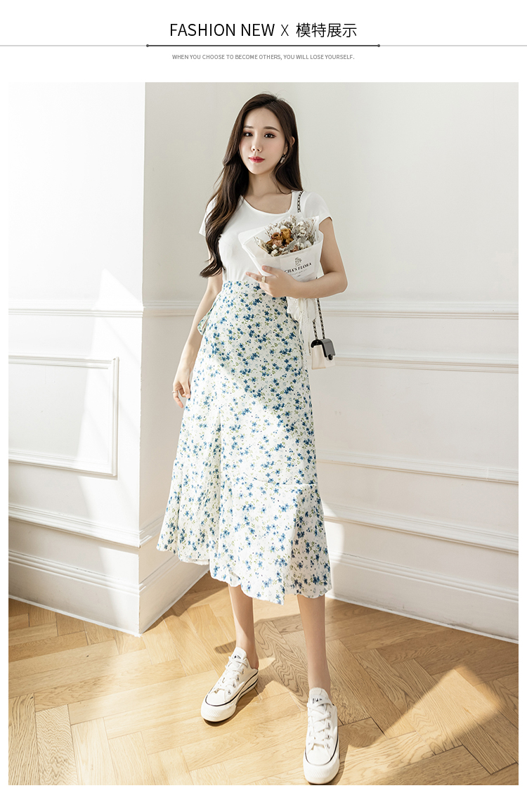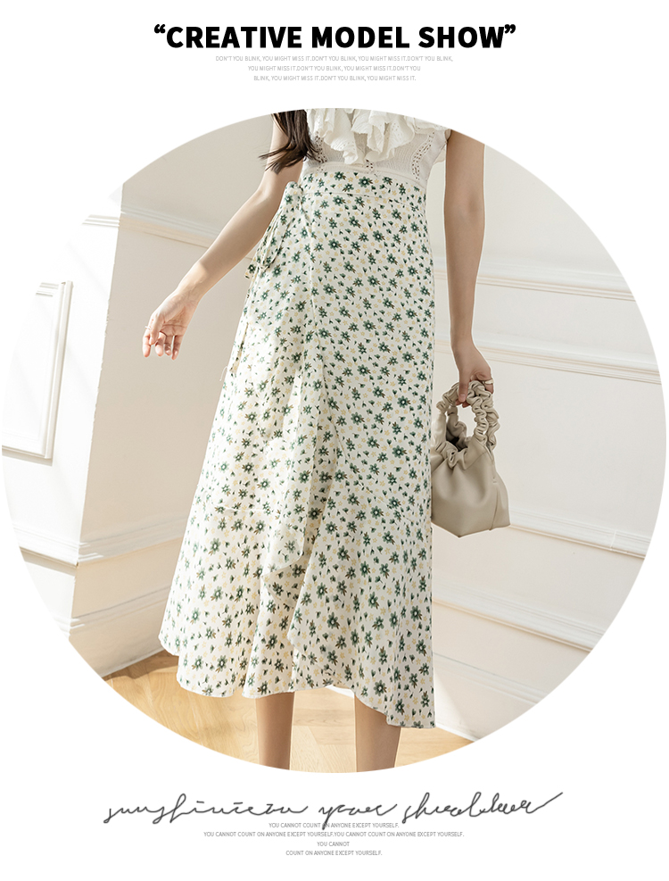 RM11813#荷叶边不规则雪纺半身裙一片式系带鱼尾长裙复古碎花裙