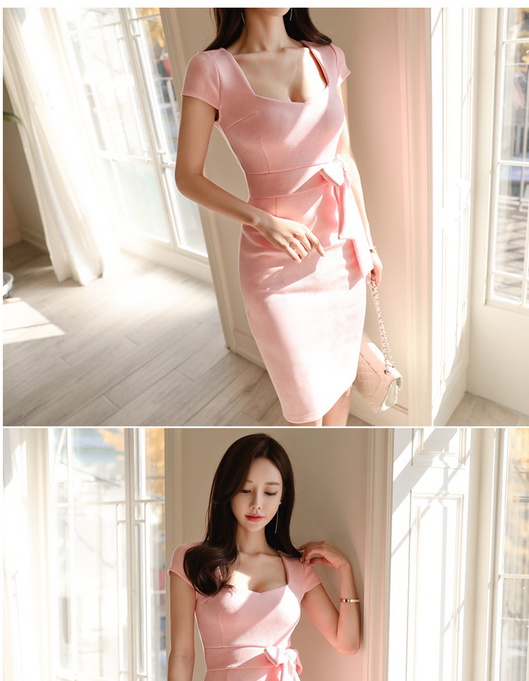 RM11862#新款女夏连衣裙修身显瘦简约优雅气质粉色中长款包臀裙