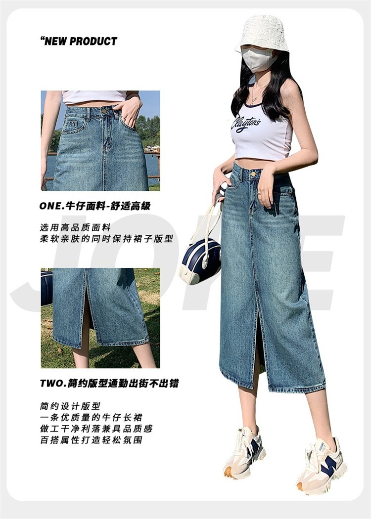 RM11999#高腰开叉牛仔裙女2023年春装新款设计感中长款遮胯包臀a字半身裙