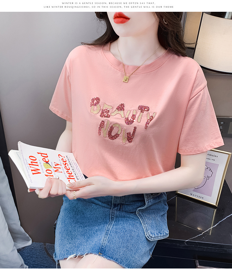 RM12088#短袖T恤女韩版夏装新款绣花减龄别致洋气百搭上衣