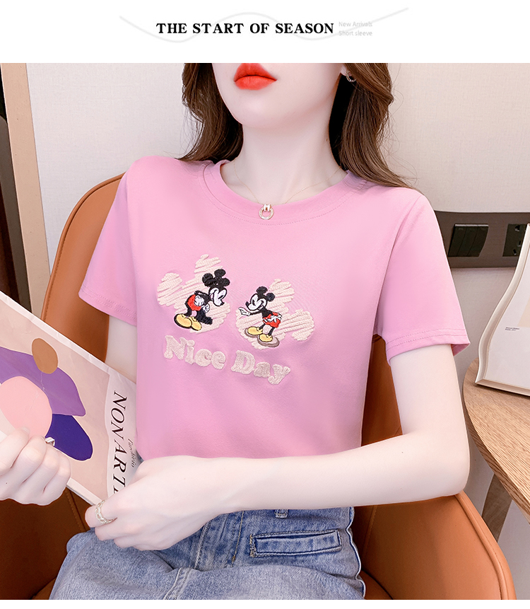 RM12107#夏季新款全棉重工艺绣花青春时尚卡通创意上衣t恤