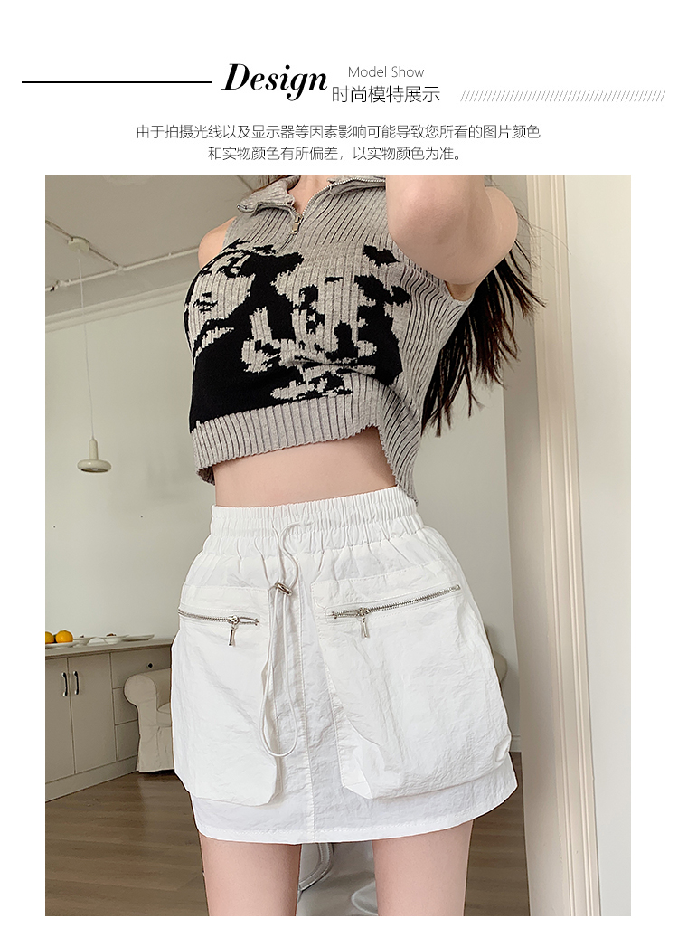 RM12108#夏装新款个性设计大口袋松紧腰工装半身裙A字短裙女